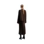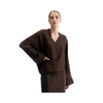 En tidlös blus i lyxig stretchsiden med avslappnad silhuett och mjuka pingvinärmar. Den har en V-formad halsöppning med liten kinakrage samt Ahlvars signaturbroderade söm längs ryggen. En perfekt kombination av elegans och komfort för både vardag och fest.