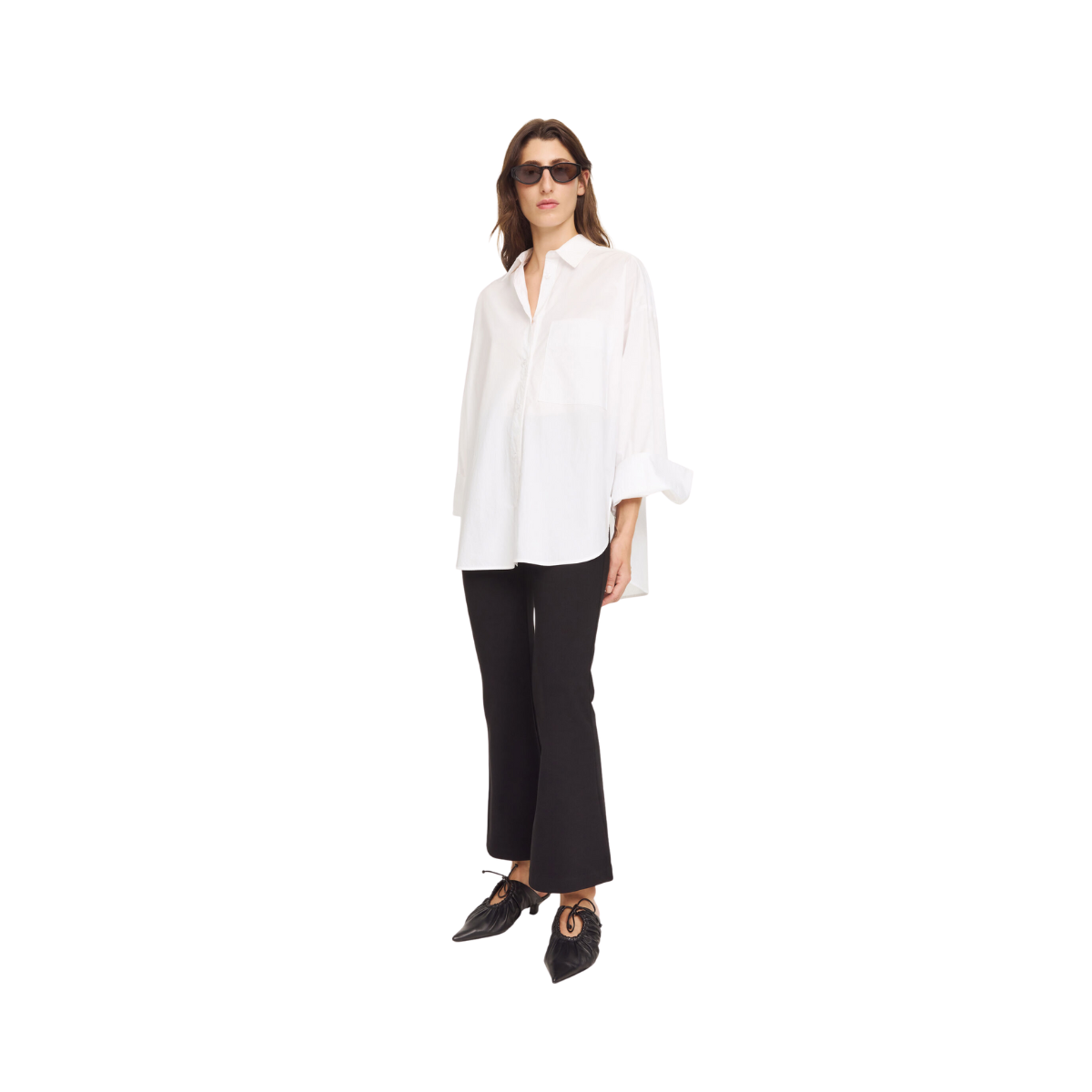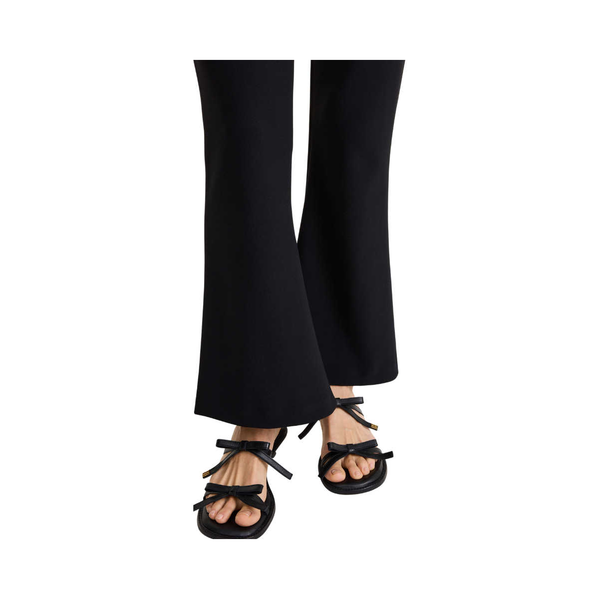Ett par byxor i en lyxig materialblandning med bekväm midja, utsvängd siluett och kortare ben. Kombinera dem med en oversized blazer och stickade plagg för en stilren look som fungerar lika bra under veckan som på helgen.