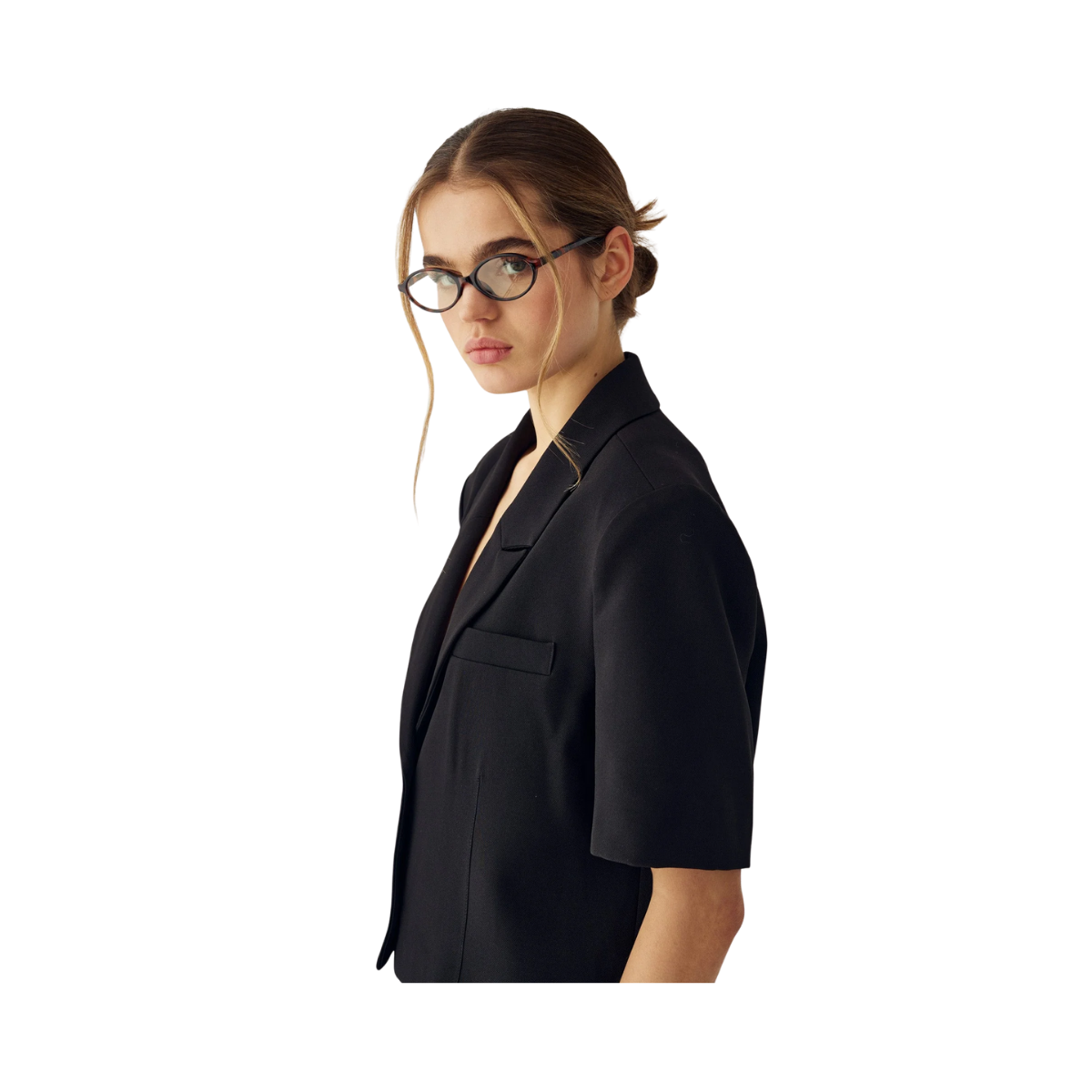 En modern tolkning av klassisk skräddarsöm. Med sitt oversize snitt och korta ärmar skapar den en stilren silhuett som passar både till vardagslook och festligare tillfällen. Perfekt för den som vill lägga till en trendig blazer till garderoben.