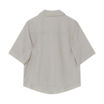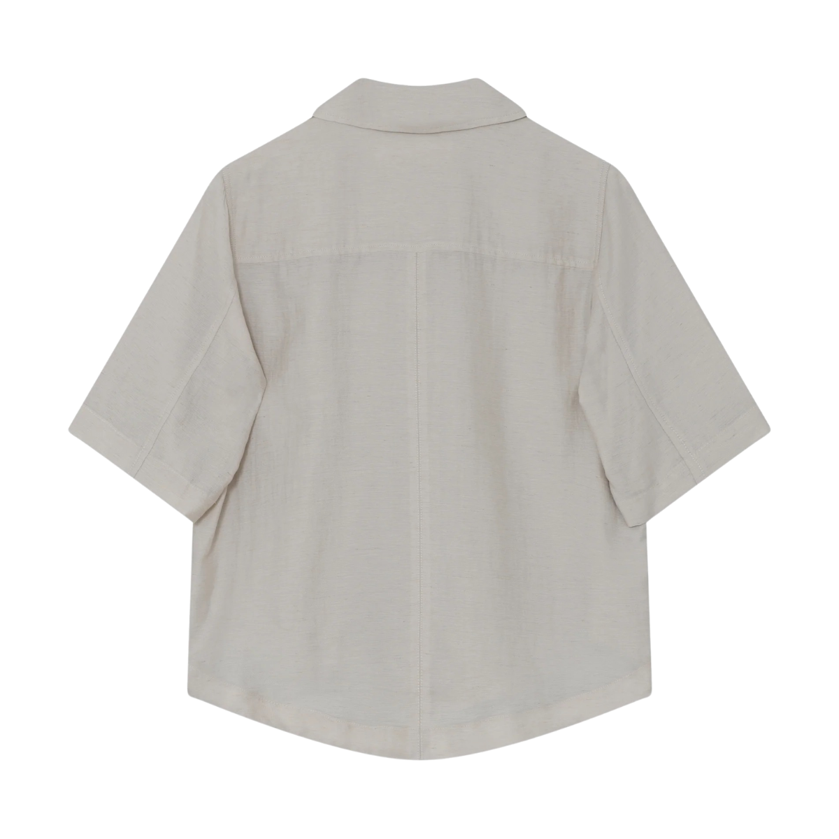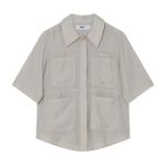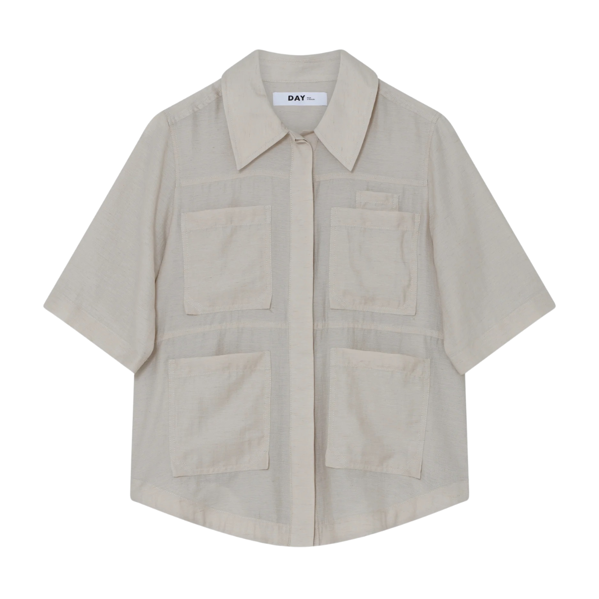 Denna linnetopp med knäppning framtill har fyra påsydda fickor på framsidan och en något längre, rundad nederkant baktill som ger ett avslappnat men genomtänkt uttryck. En lättstylad modell som passar perfekt tillsammans med raka byxor för en chic och enkel look.