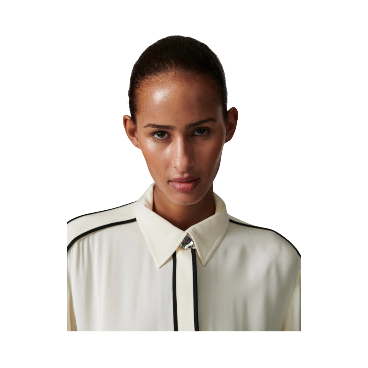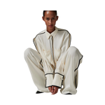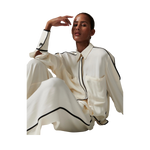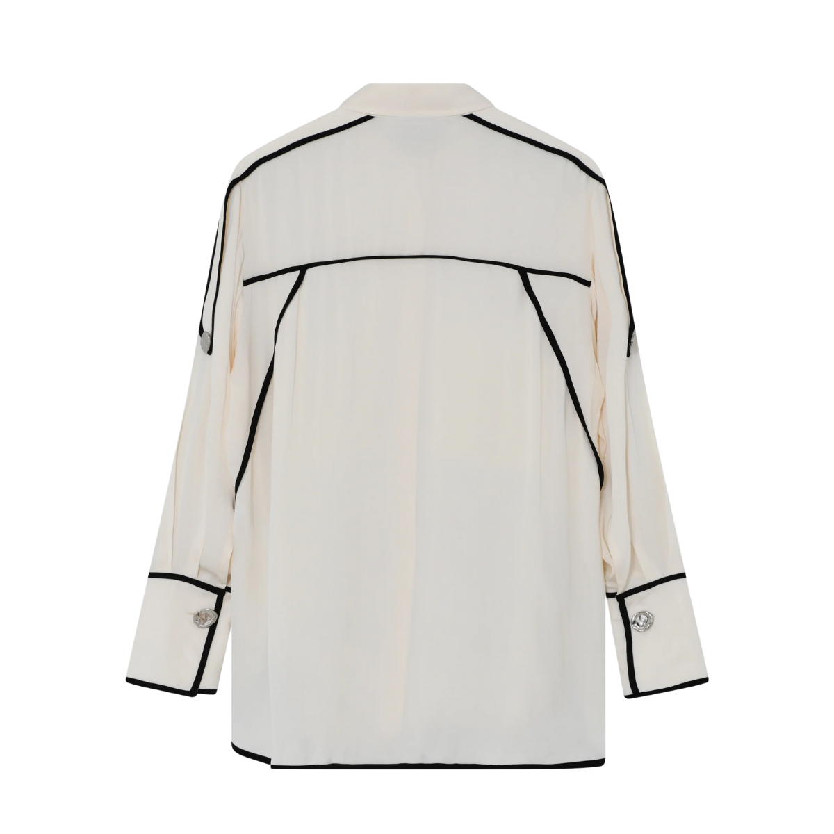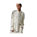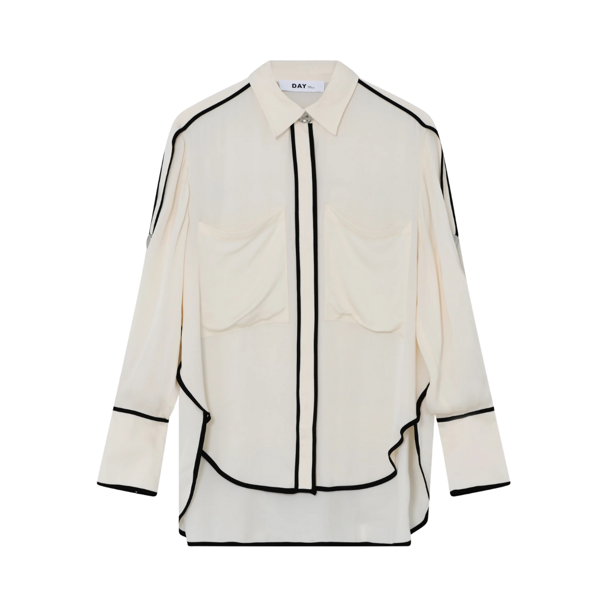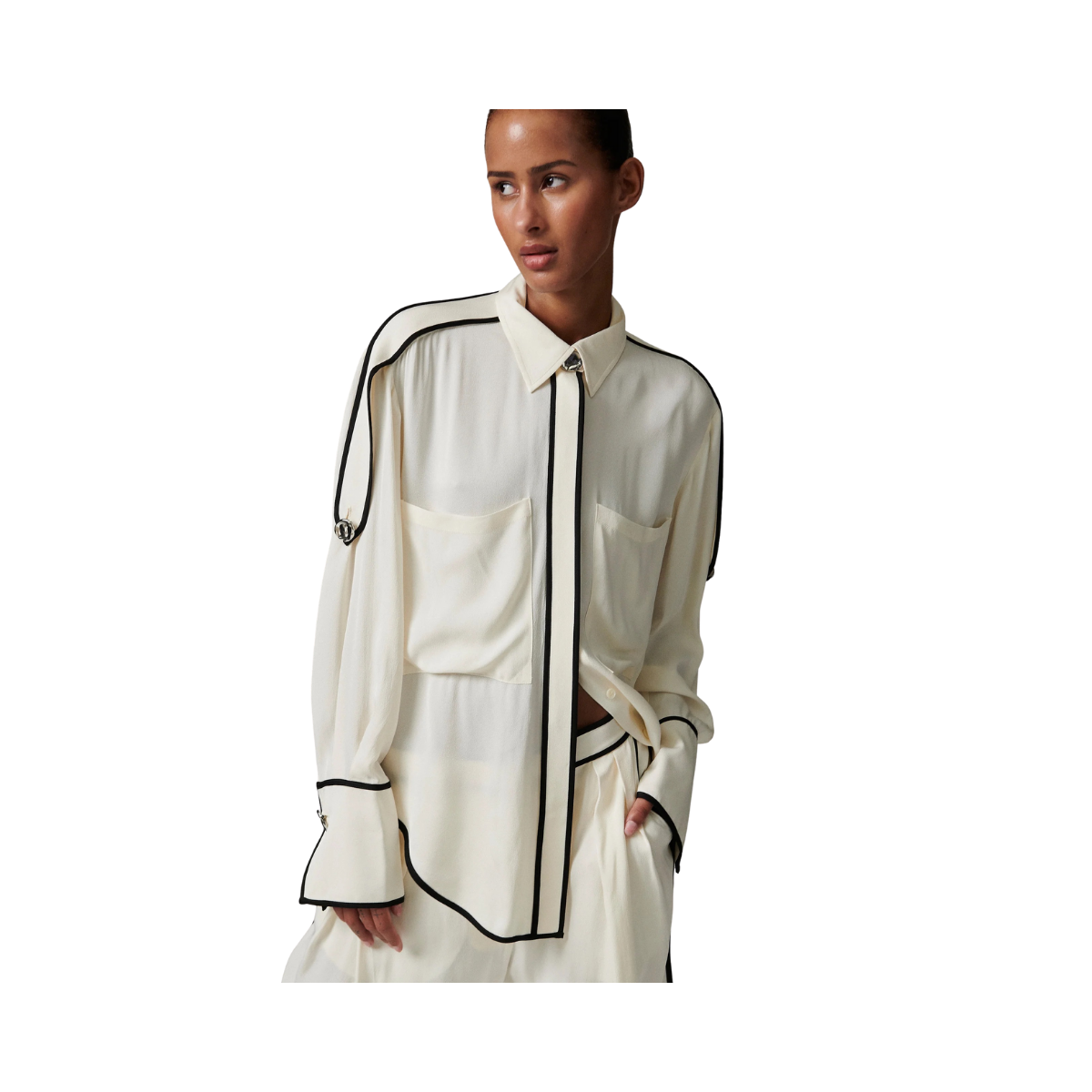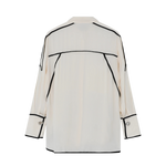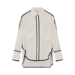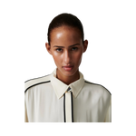 Denna följsamma skjorta med knäppning framtill har kontrasterande passpoaler, epåletter på axlarna och en lätt nedhasad fåll baktill. Två bröstfickor ger en funktionell touch. Tack vare det mjuka materialet och de rena linjerna blir toppen ett elegant och uttrycksfullt tillskott till garderoben.