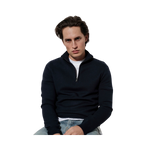 Mörkblå stickad tröja från Brand Island i regular fit, designad med stretch för extra komfort. Knäppning framtill med halvzip, ribbstickade kanter och långärmade ärmar för en tidlös och funktionell design.