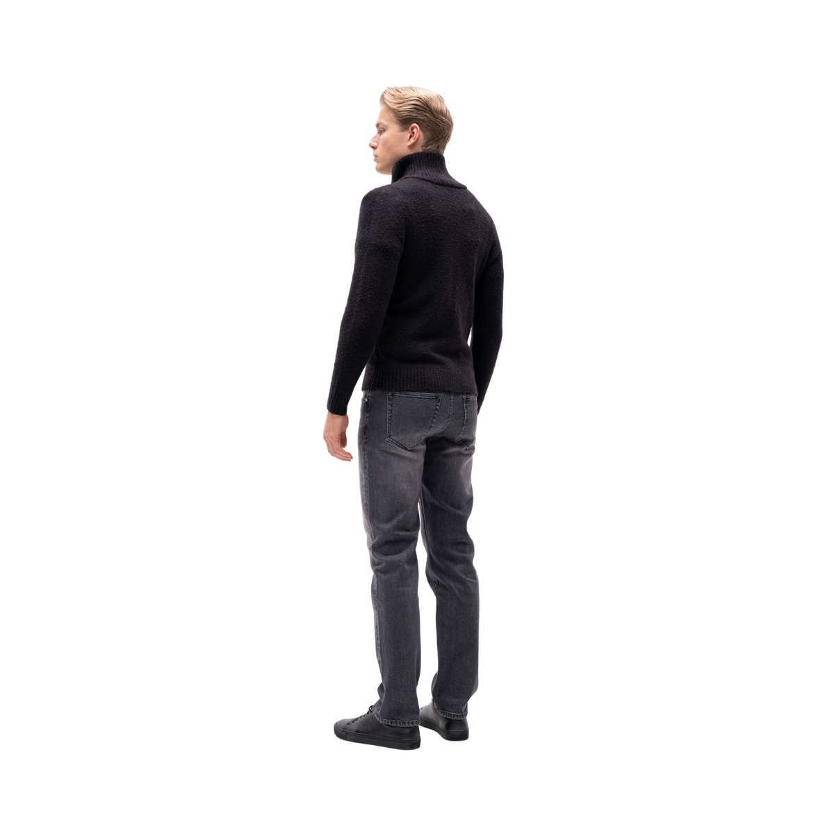 En stickad kofta/överdel med dubbeldragkedja fram, designad för både stil och funktion. Den har hög krage som kan stängas hela vägen, ribbade detaljer vid ärmslut och längs nederkant som ger en strukturerad och sofistikerad siluett. Kan både matchas till jeans eller chinos.