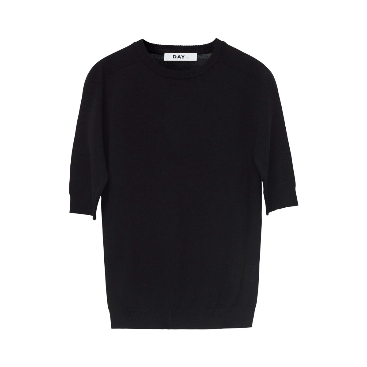 En tunnstickad tröja i t-shirtmodell med rund halsringning och ribbade avslut vid ärmar och fåll. Tröjan har en normal passform och är perfekt att matcha med höga byxor för en klassisk och professionell look.