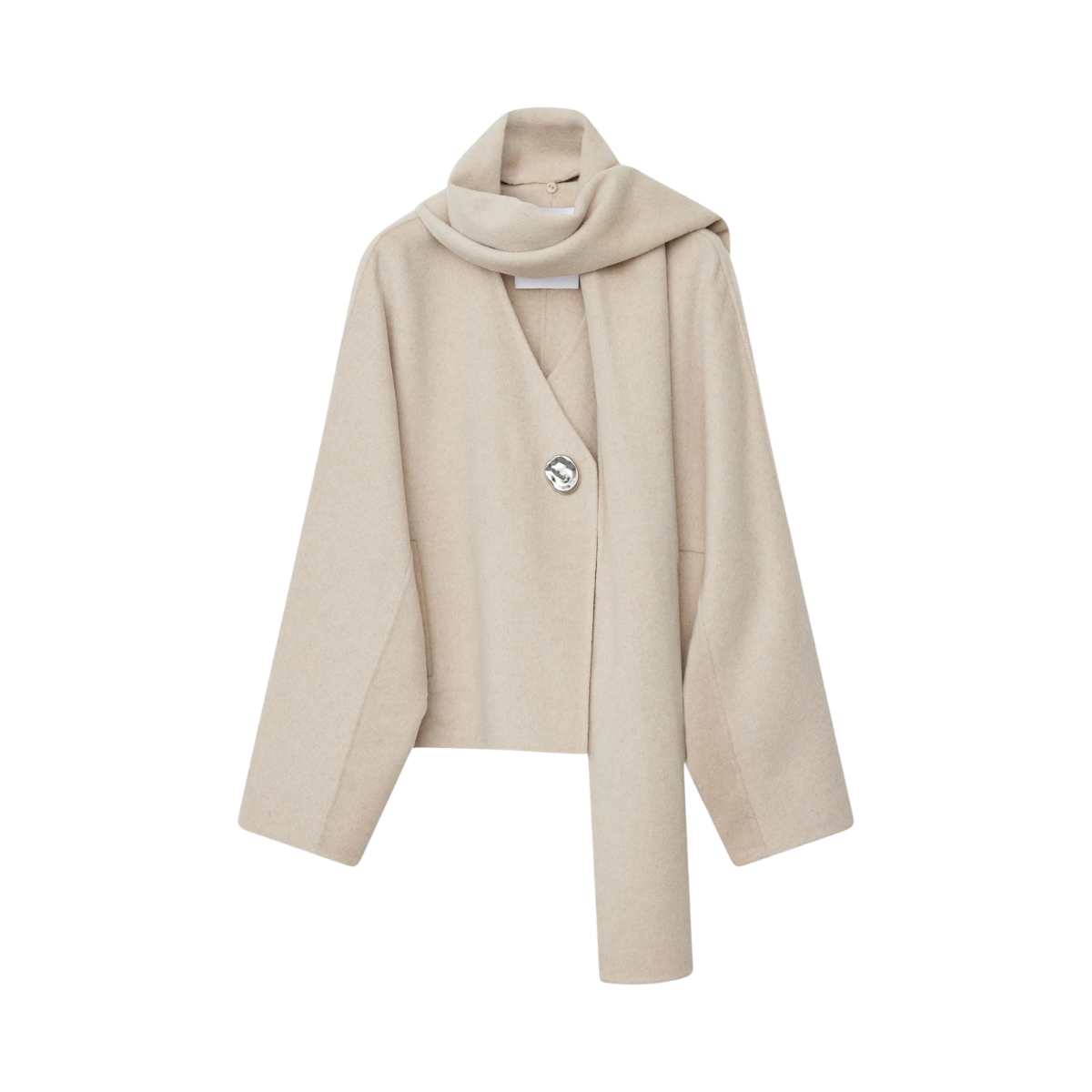 Styckpris / perDesiree från DAY är en ultramjuk jacka tillverkad i dubbelvävt ullmaterial, perfekt för att hålla värmen med stil. Jackan har en dekorativ broschknäppning, sidofickor, dolmanärmar och en avtagbar scarf i samma material som jackan, vilket gör den extra mångsidig. Den är ofodrad och har en oversized passform som ger en avslappnad och trendig look.