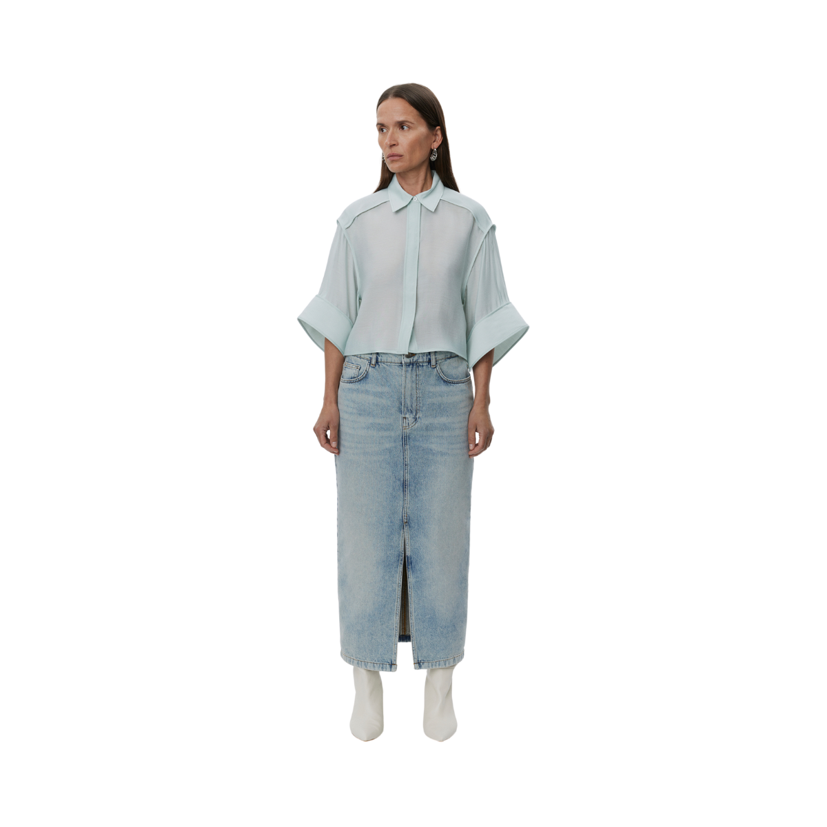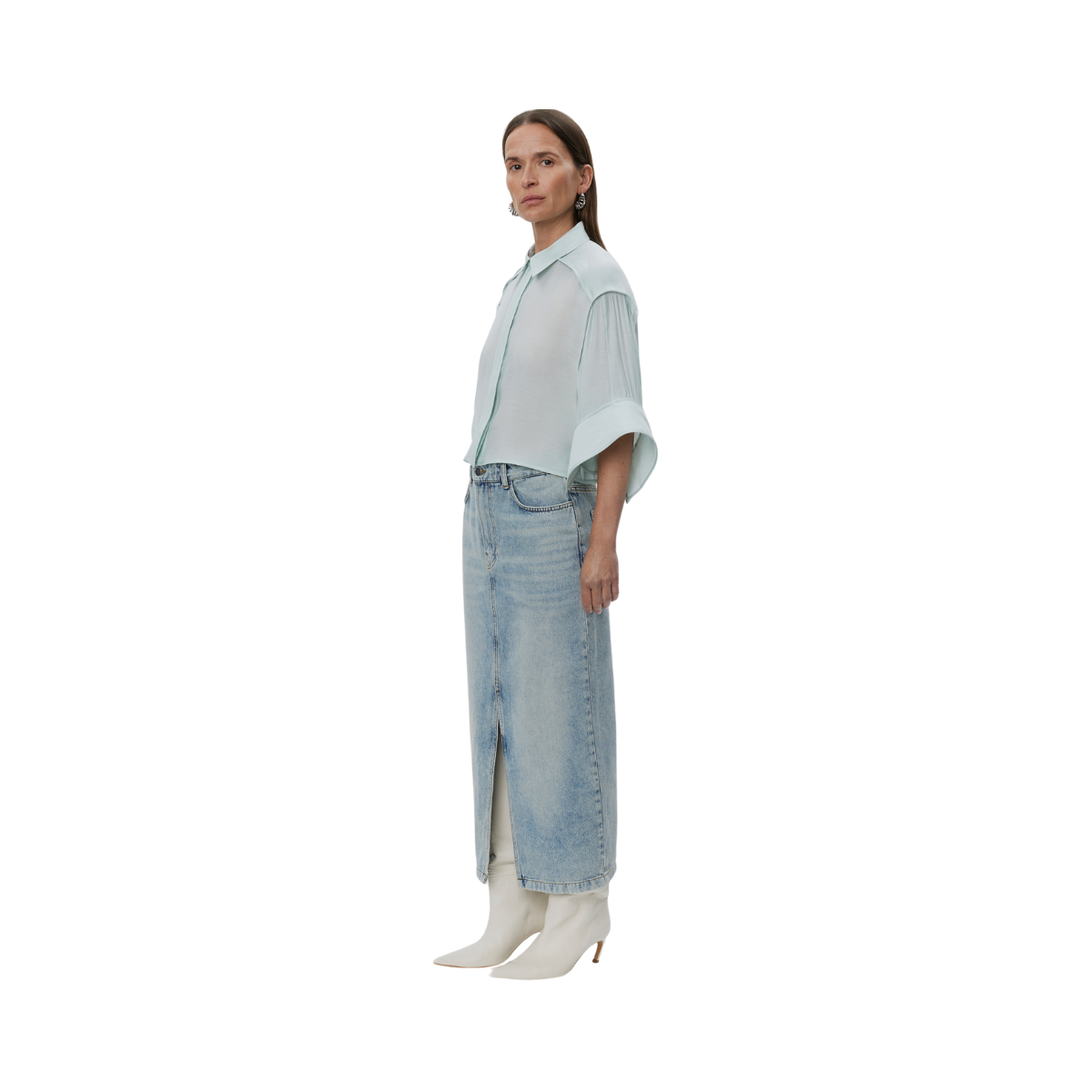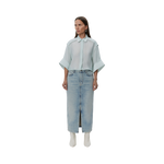 Styckpris / perNiki från DAY är en denimkjol i pennmodell med fem fickor, gylf med knappstängning och en stilren frontslits. Den figurnära passformen framhäver silhuetten på ett smickrande sätt. Den klassiska designen gör den tidlös och enkel att matcha.