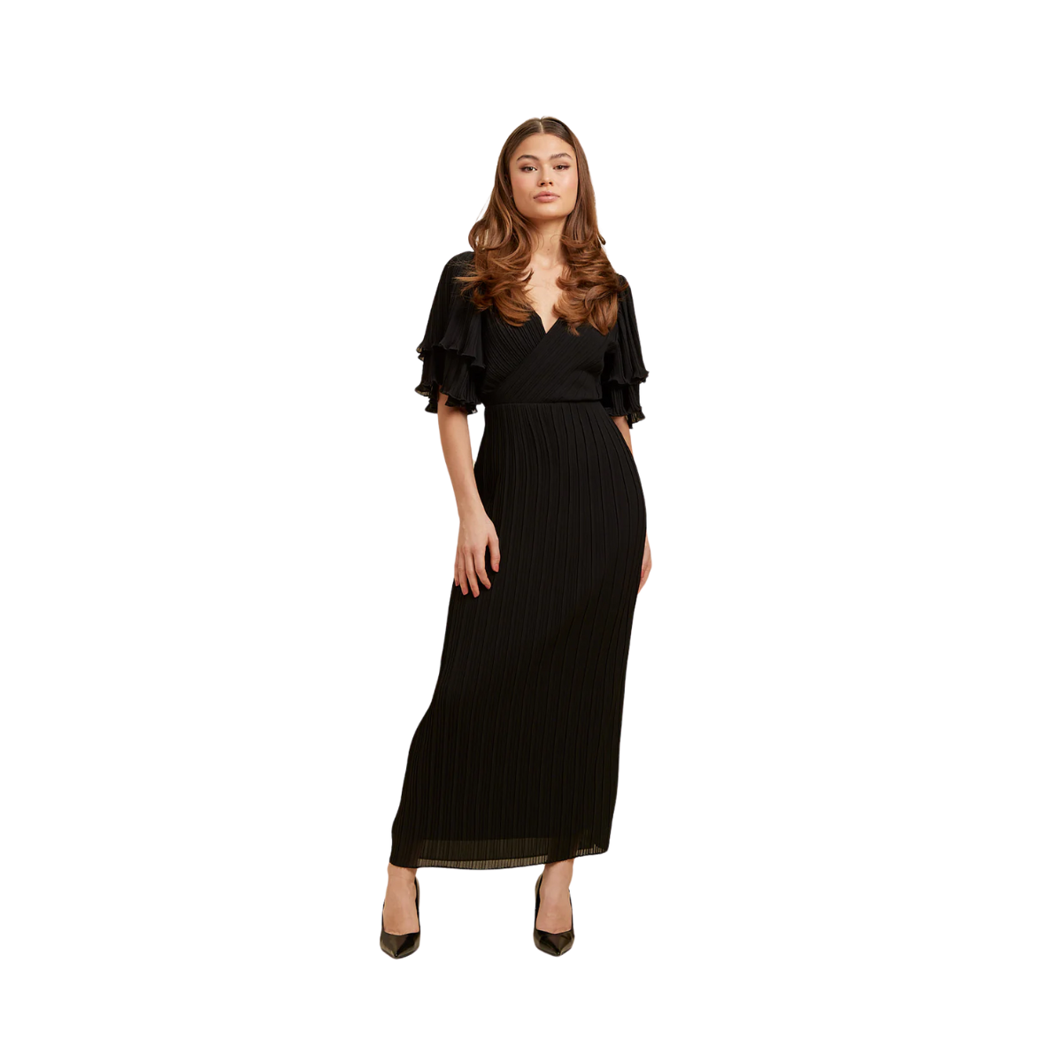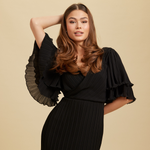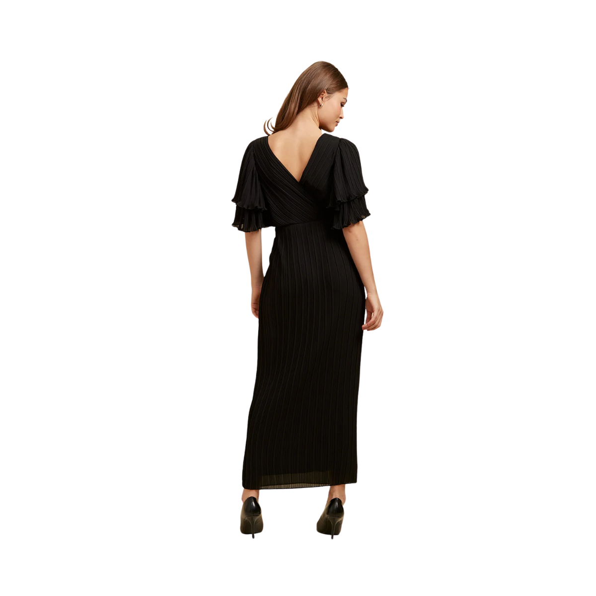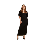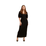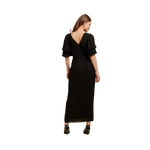 Styckpris / perVenice Dress från Dry Lake. En svart elegant klänning som utstrålar sofistikering vid varje söm. Med mellanlånga trumpetärmar, en ankellång fåll och en smickrande V-ringning framhäver den här klänningen siluetten med en definierad midja.