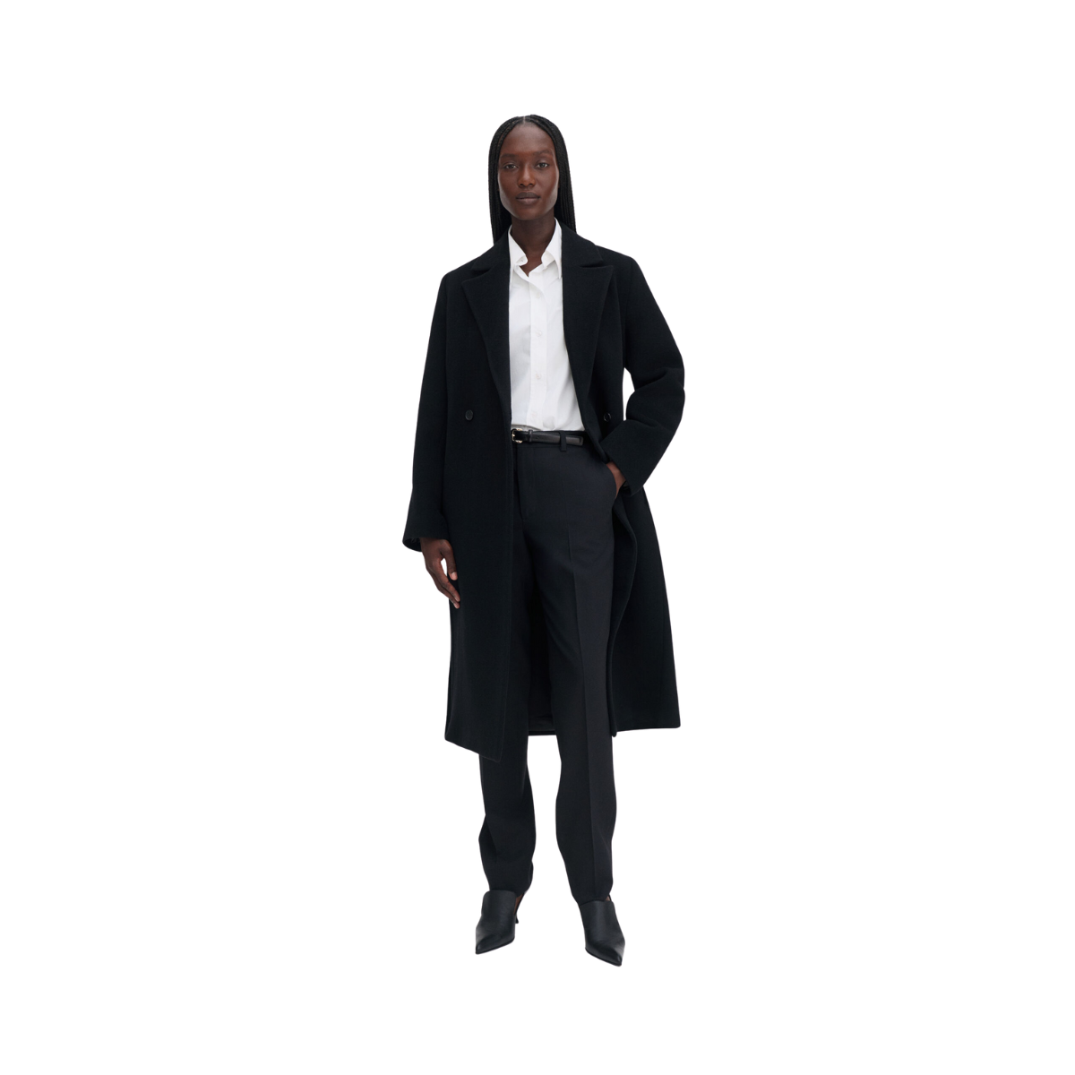 En kappa som har en regular fit och är skräddad i en tung, återvunnen ullblandning med borstad textur. Den är designad med dubbelknäppning och är helt fodrad. En varm och stilfull ytterrock som lyfter alla dina outfits under höst och vinter.