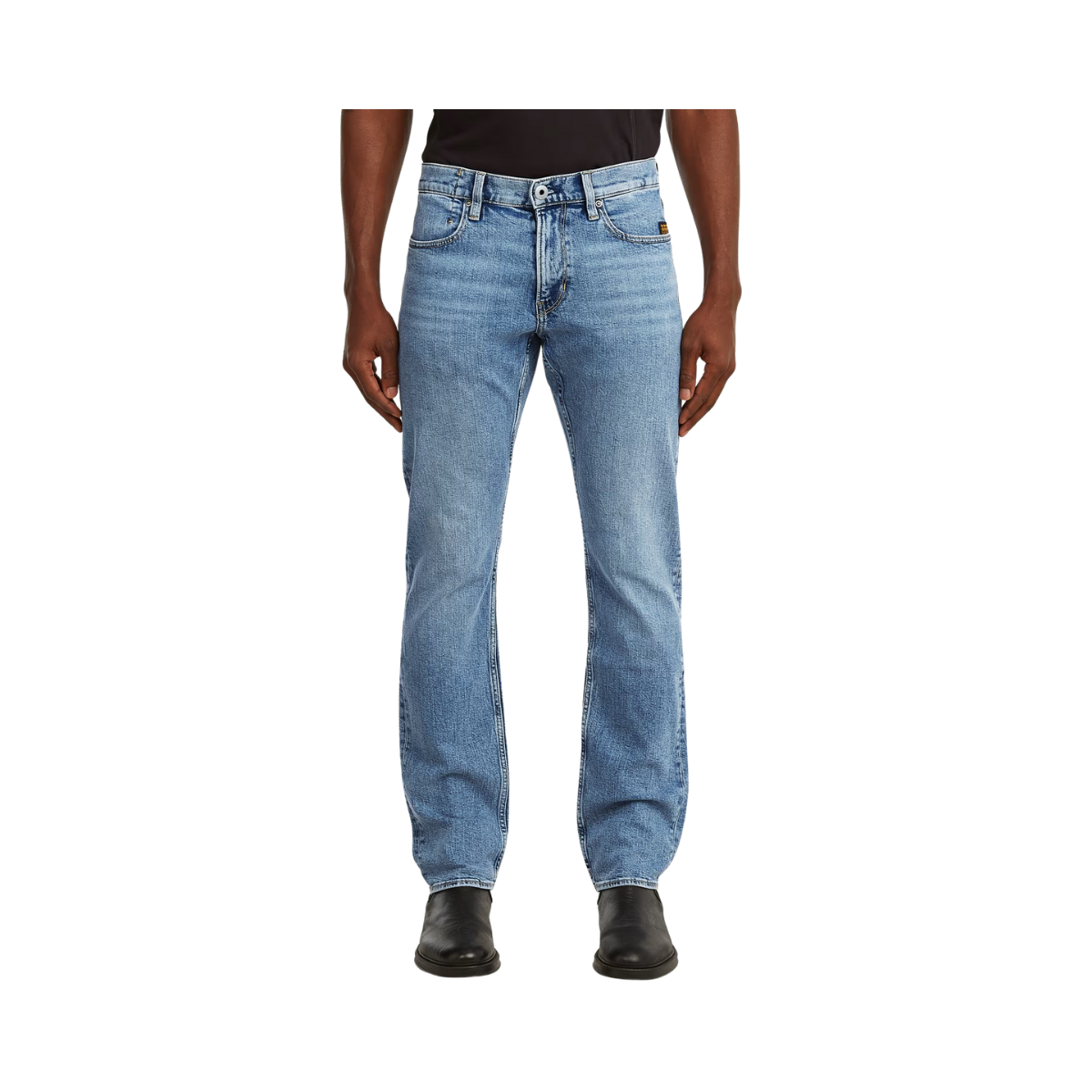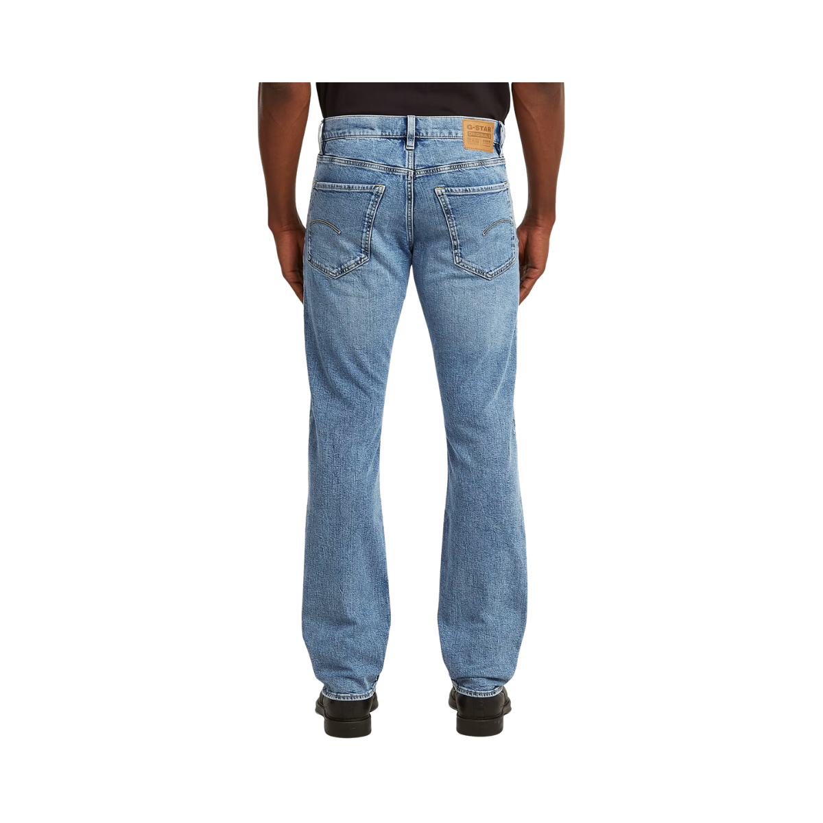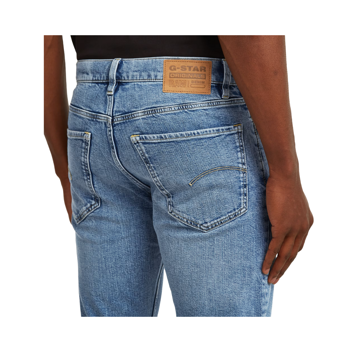 • G-Star-etikett på baksidan, tillverkad av ett läderliknande papperstyg