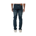 Mörkblå jeans från Brand Island i regular fit, tillverkade med stretch för optimal komfort och rörelsefrihet. Designade med fyra praktiska fickor och klassisk knappstängning framtill, vilket gör dem till ett mångsidigt val för både vardag och fest.