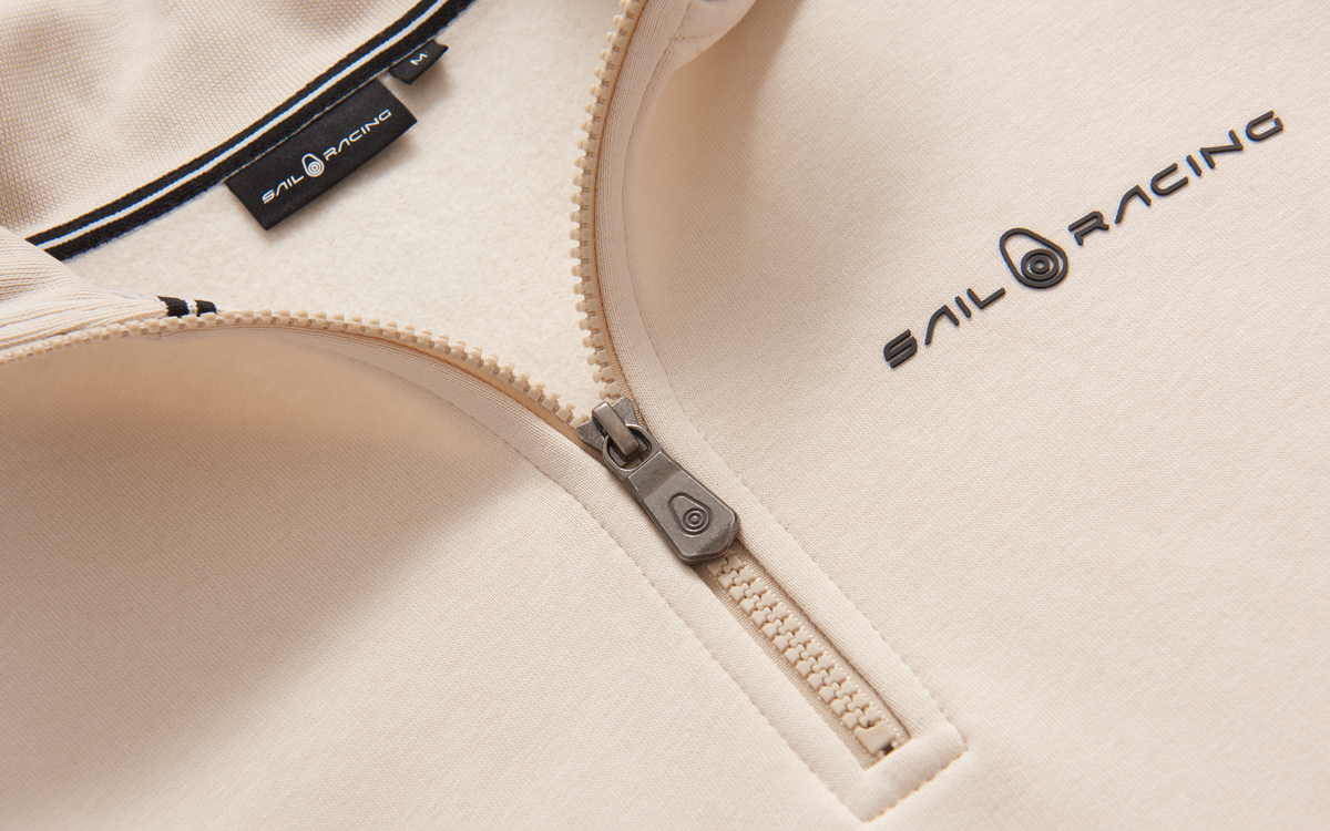 Styckpris / per'Bowman Logo T-Neck' halfzip tröja från Sail Racing. Långärmad, högkrage och ribbstickade muddar. Sail Racing logotyp över bröstet.
