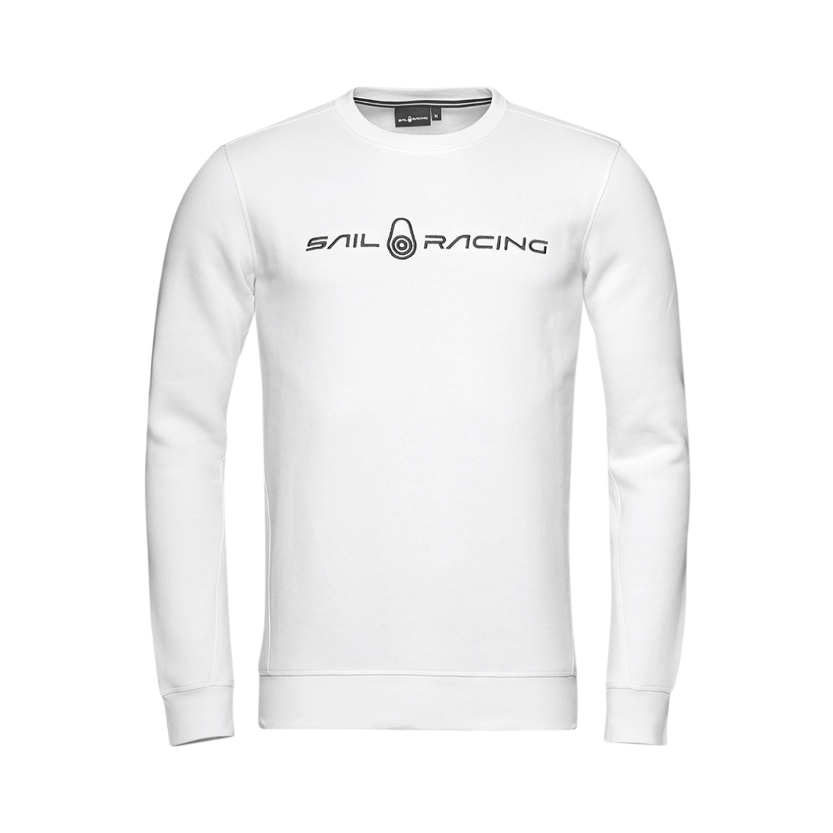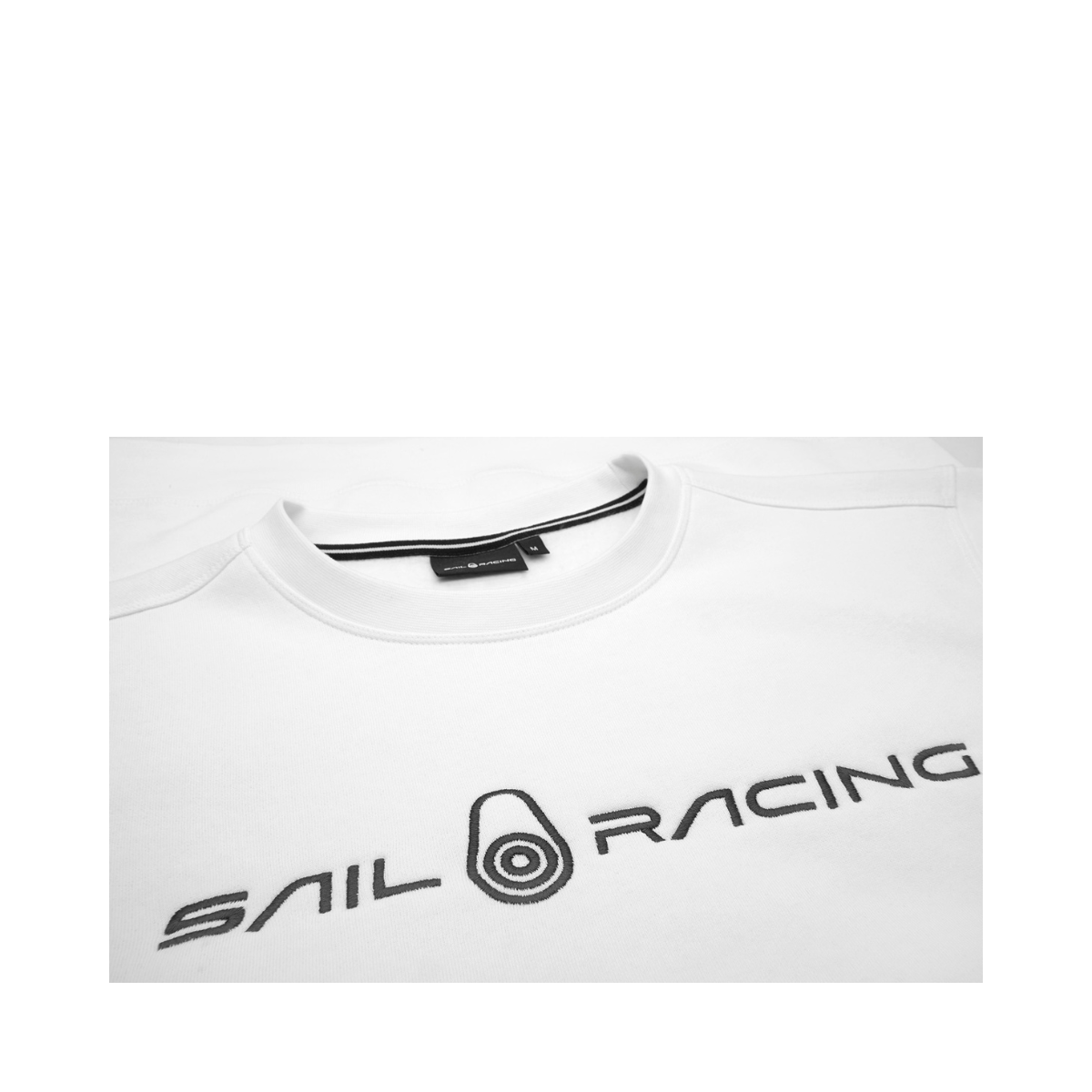 Vit Bowman Sweater tillverkad i bomull och polyester. Ribbad mudd vid halsen, ärmslut och nedtill. Broderad Sail Racing logotyp på bröstet och i nacken.