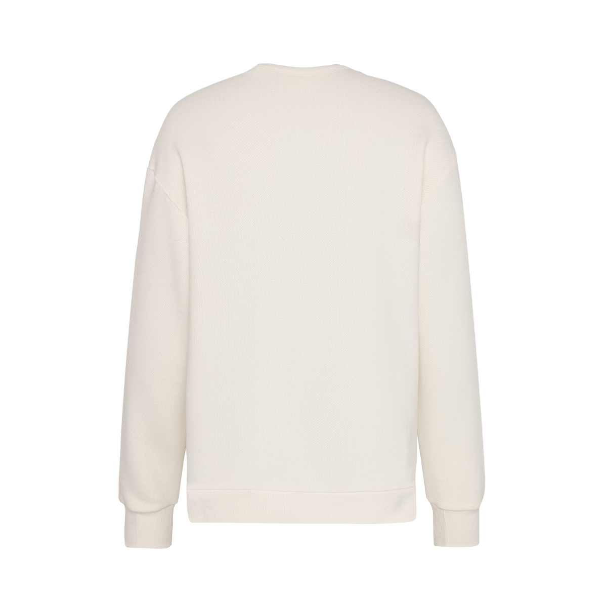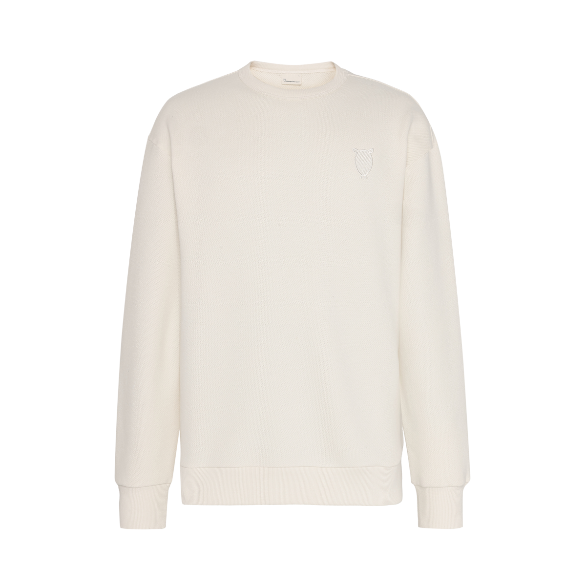 En sweatshirt med lös passform tillverkad i ekologisk bomull med diagonalstickad struktur som är både lätt och mjuk mot huden. Tröjan har rund hals, ribbade muddar och en ton-i-ton broderad uggla på bröstet. GOTS-certifierad och vegansk.