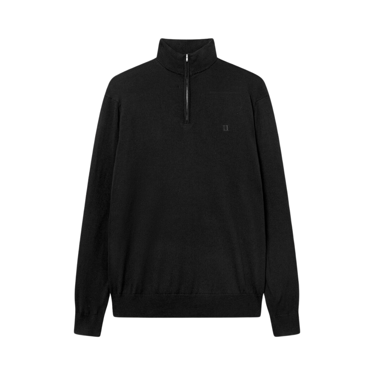 Styckpris / perSvart half-zip tröja från Les Deux. Tröjan har stickad struktur och är tillverkad i merinoull för en mjuk textur och värme. Den har en normal passform med halv dragkedja vid halsen. Tröjan har en diskret Les Deux-logga på bröstet