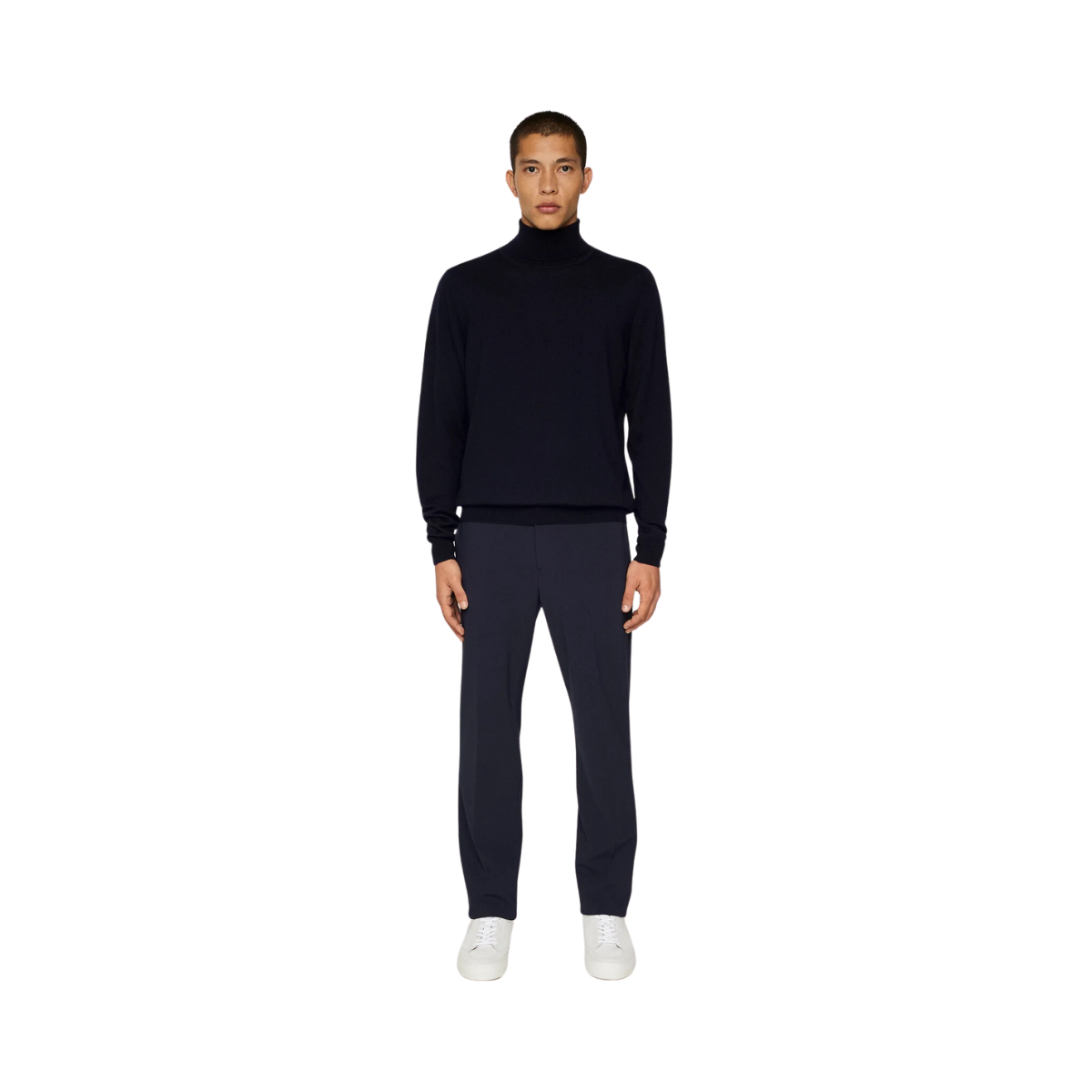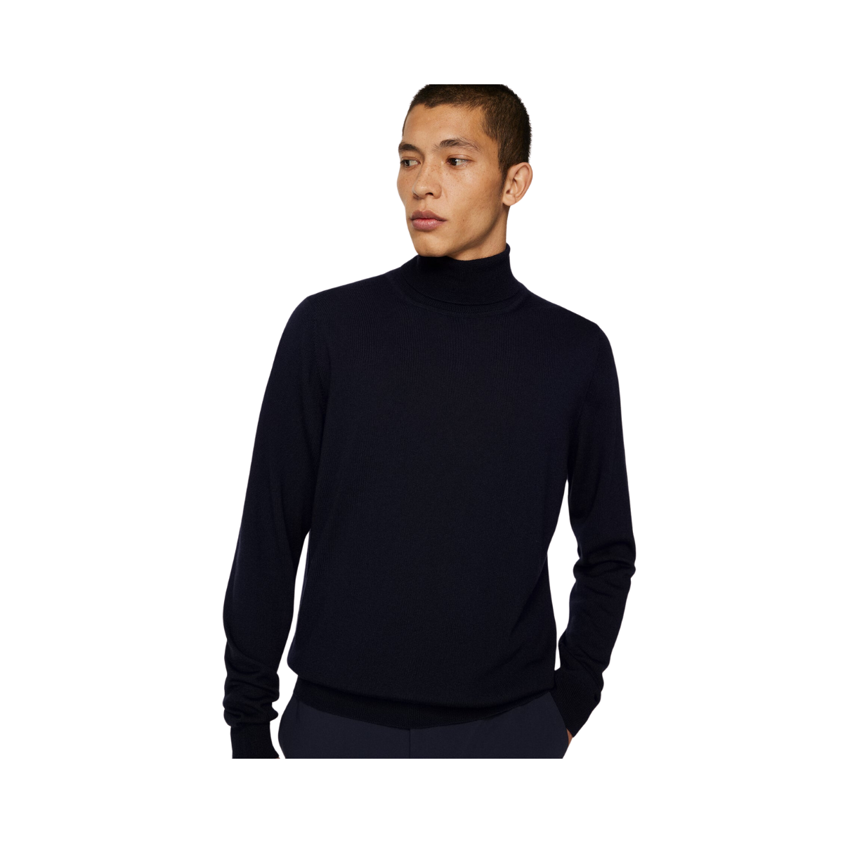 Navyblå tutleneck från J.Lindeberg. Tillverkad i ull. Tröjan har en normal passform, långa ärmar, Ribbad fåll, Ribbad ärmslut och en hög krage.