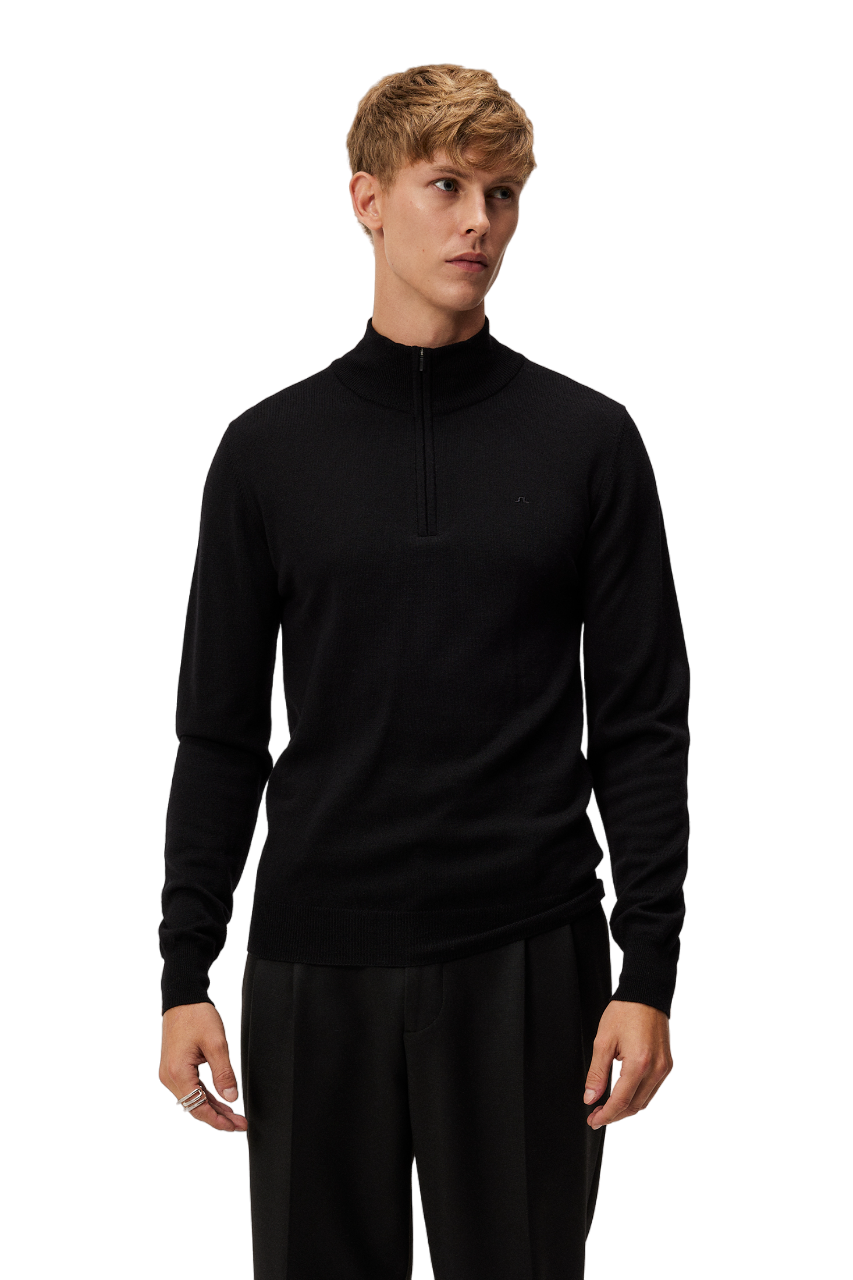 Styckpris / perSvart ulltröja med half zip från J.Lindeberg. Bridge-logotyp på bröstet. Den är skuren i en bekväm slimmad passform, vilket gör den till ett tidlöst tillskott till din garderob.