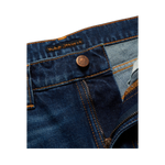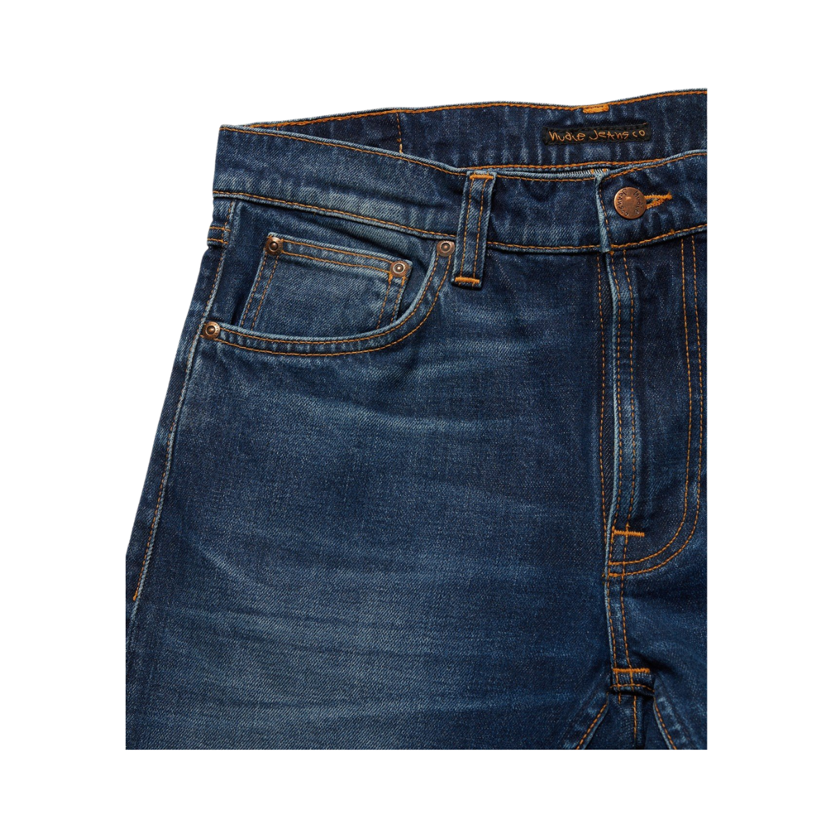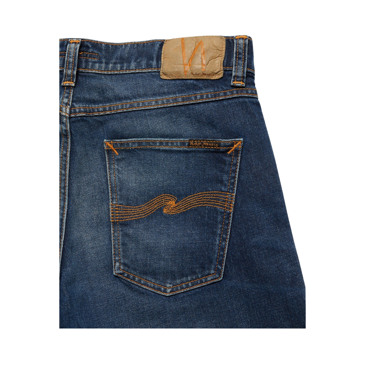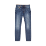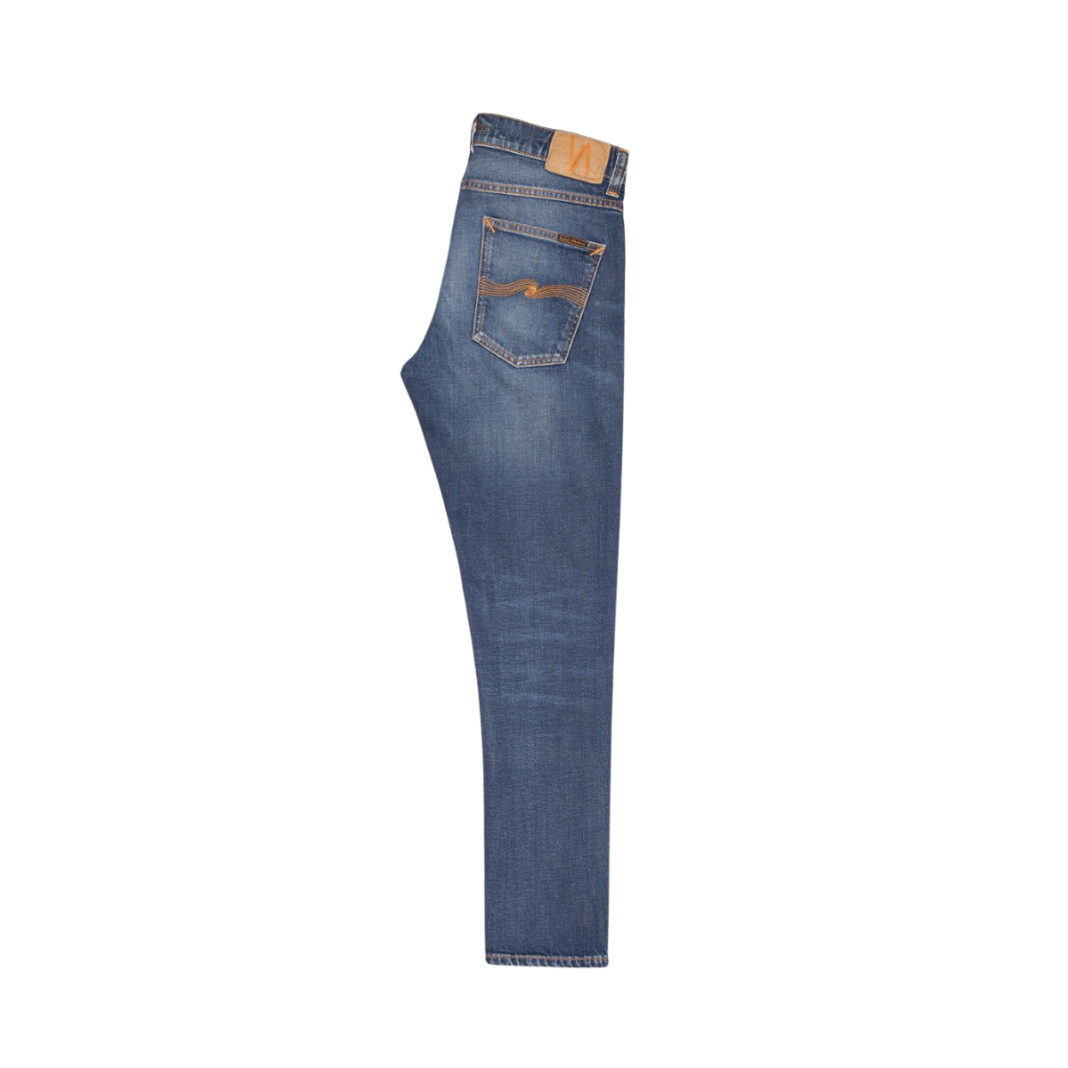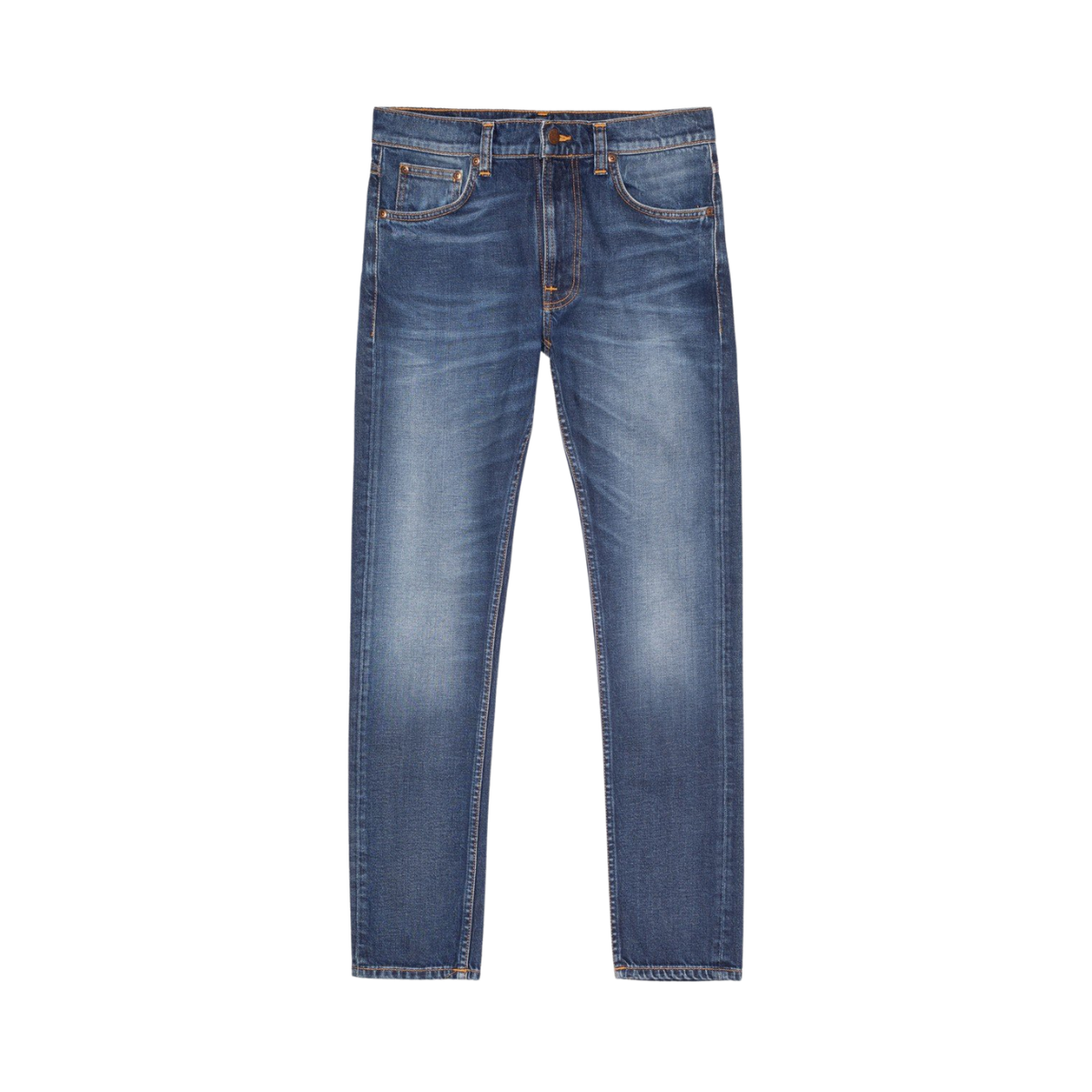 Slimmade jeans med avsmalnande ben i tvättad stretchdenim. Färgen är en klassisk blå ton med subtila slitningar vid lår, knän och bakfickor, vilket skapar en naturligt nött look. Den organiska bomullen med stretch ger både komfort och formstabilitet – ett par jeans som sitter snyggt och känns bra hela dagen.