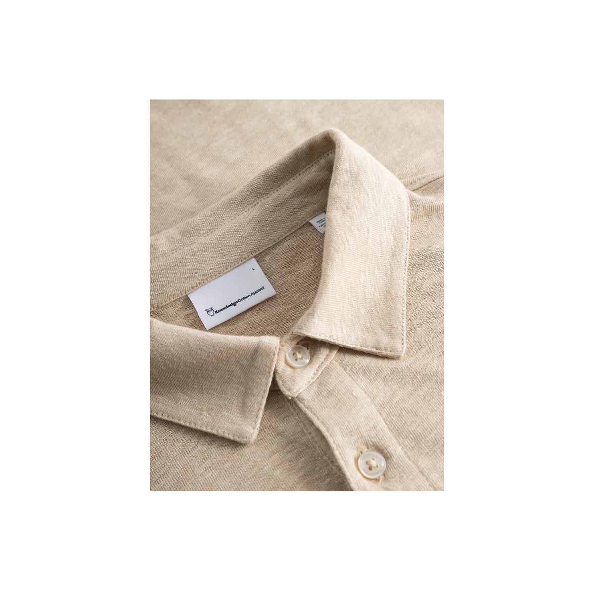 Styckpris / perBeige pikétröja från Knowledge Cotton Apparel. Tillverkad i 100% ekologisk linen. Pikétröjan har en normal passform med klassisk krage och knäppning.