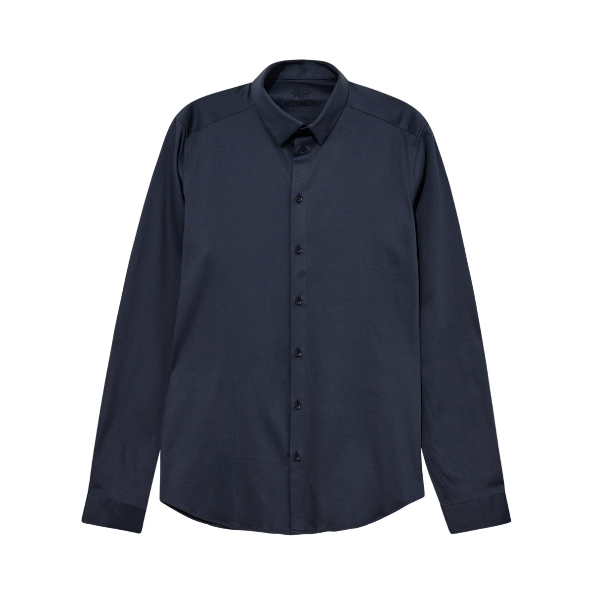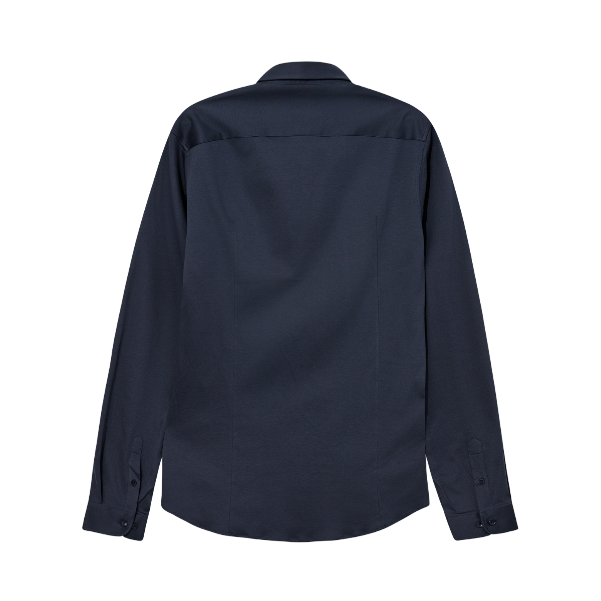Marco Jersey Shirt från Mos Mosh. Skjortan är designad med en smalare skärning för en mer skräddarsydd passform och har knappstängning, justerbara manschetter och en dold button-down-krage för en elegant look. Den är tillverkad i ett robust dubbelstickat tyg som överträffar vanlig jersey i styrka, elasticitet och hållbarhet. Materialet genomgår dubbel mercerisering för en lyxig känsla och finish.