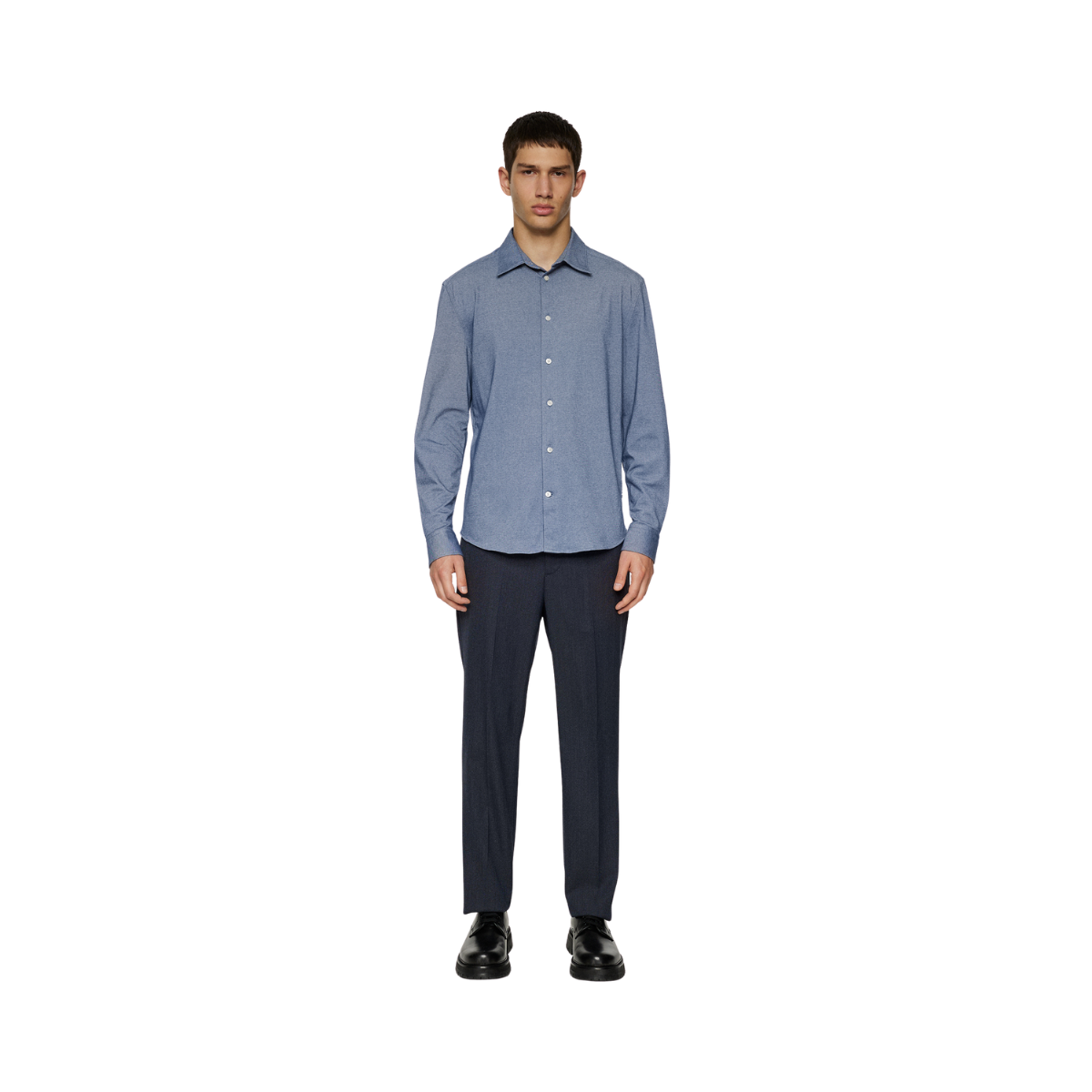 En mångsidig och stilren skjorta i en mjuk och stretchig piqué-jerseykvalitet. Den har en semi-slim passform, klassisk krage och diskreta pärlemorknappar med logotyp. Perfekt för både vardag och mer formella tillfällen.