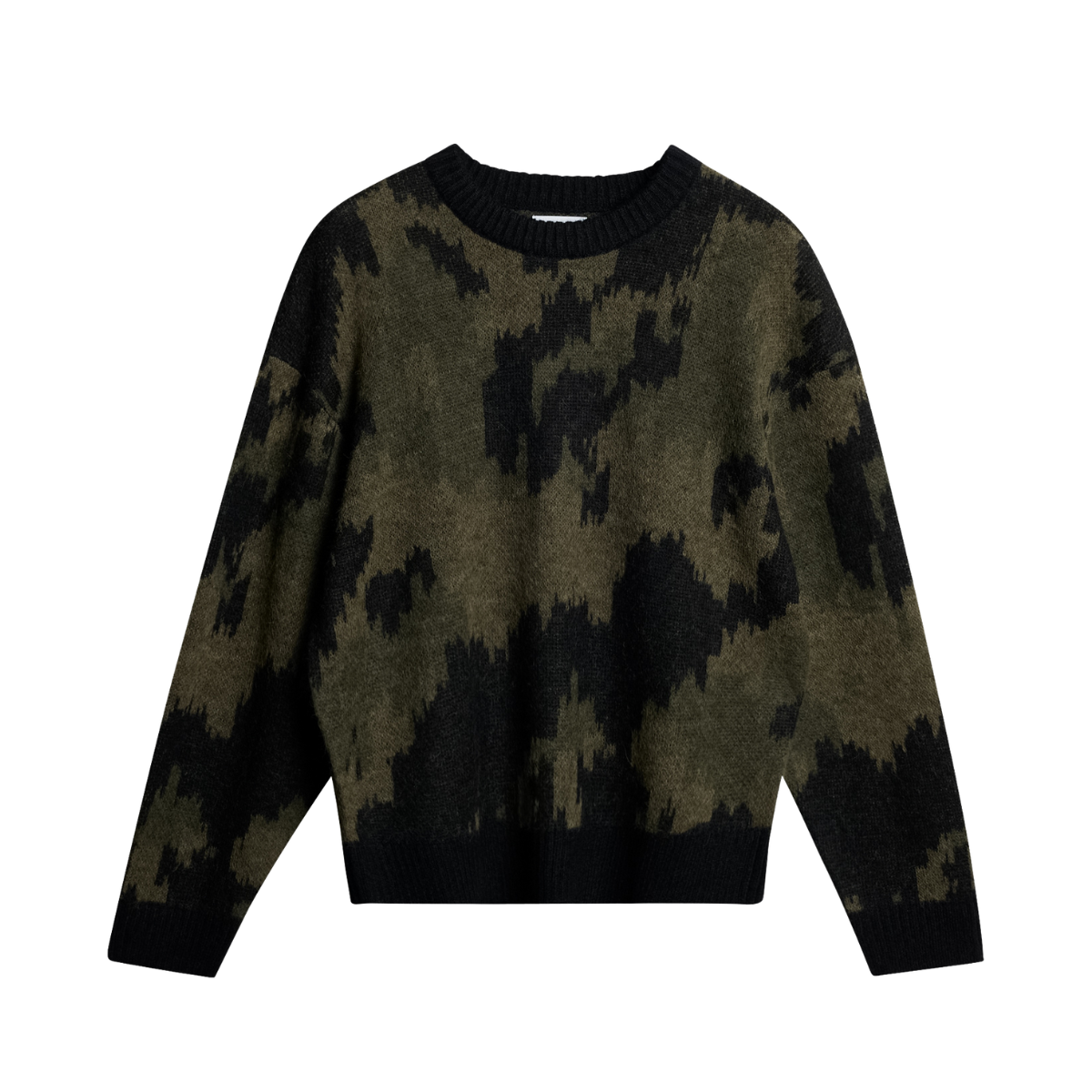En statement-tröja med grafiskt jacquardmönster som ger ett distinkt och modernt uttryck. Tillverkad i en mjuk alpackablandning med ribbade avslut och klassisk passform, kombinerar den komfort med karaktär – perfekt för dig som vill sticka ut med stil.
