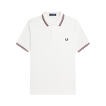 Styckpris / perVit pikétröja från Fred Perry. Tillverkad i bomull. Pikén har en normal passform, korta ärmar, en krage och logotyp på vänster bröst. Tröjan har diskreta ränder i vinrött och mörkblått.