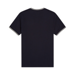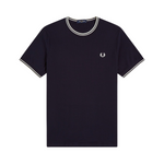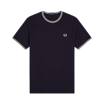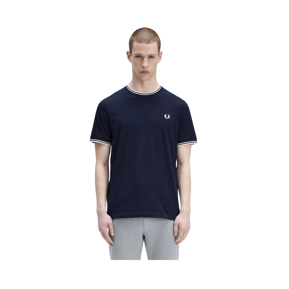 En klassisk t-shirt med dubbla ränder vid krage och ärmslut. Tillverkad i mjuk bomull med klassisk passform. Kortärmad modell med rund halsringning och broderad logotyp på vänster bröst.