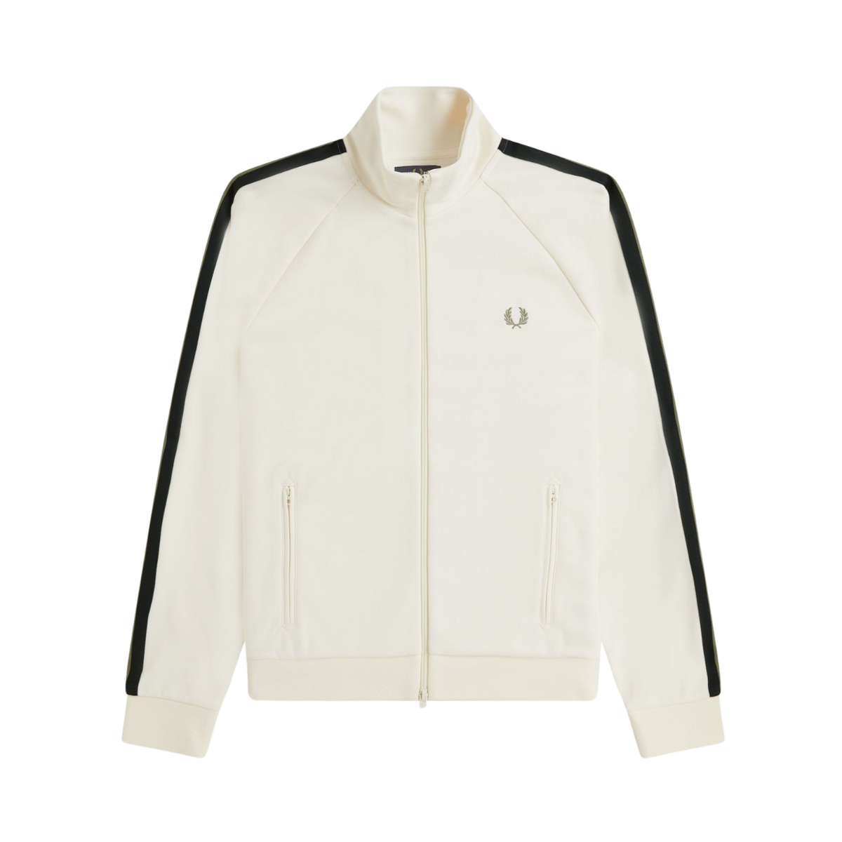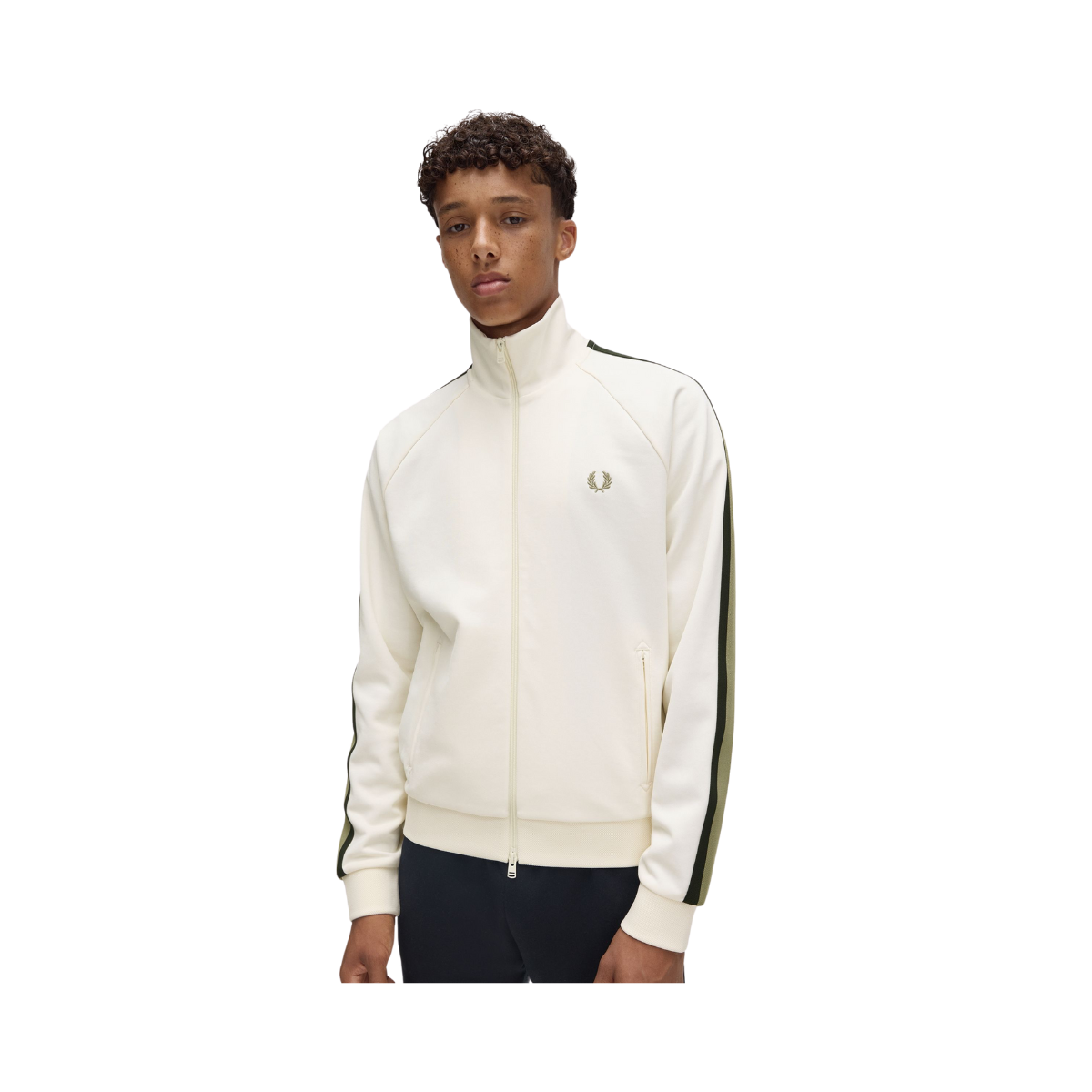 Styckpris / perTrack jacket från Fred Perry i färgen XXX. Gjord i mjuk trikå av återvunnen polyester och bomull. Klassisk modell med dragkedja, fickor och broderad logga på bröstet. Ribbstickade kanter och tejp längs ärmarna ger en sportig känsla med stilrena detaljer.
