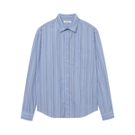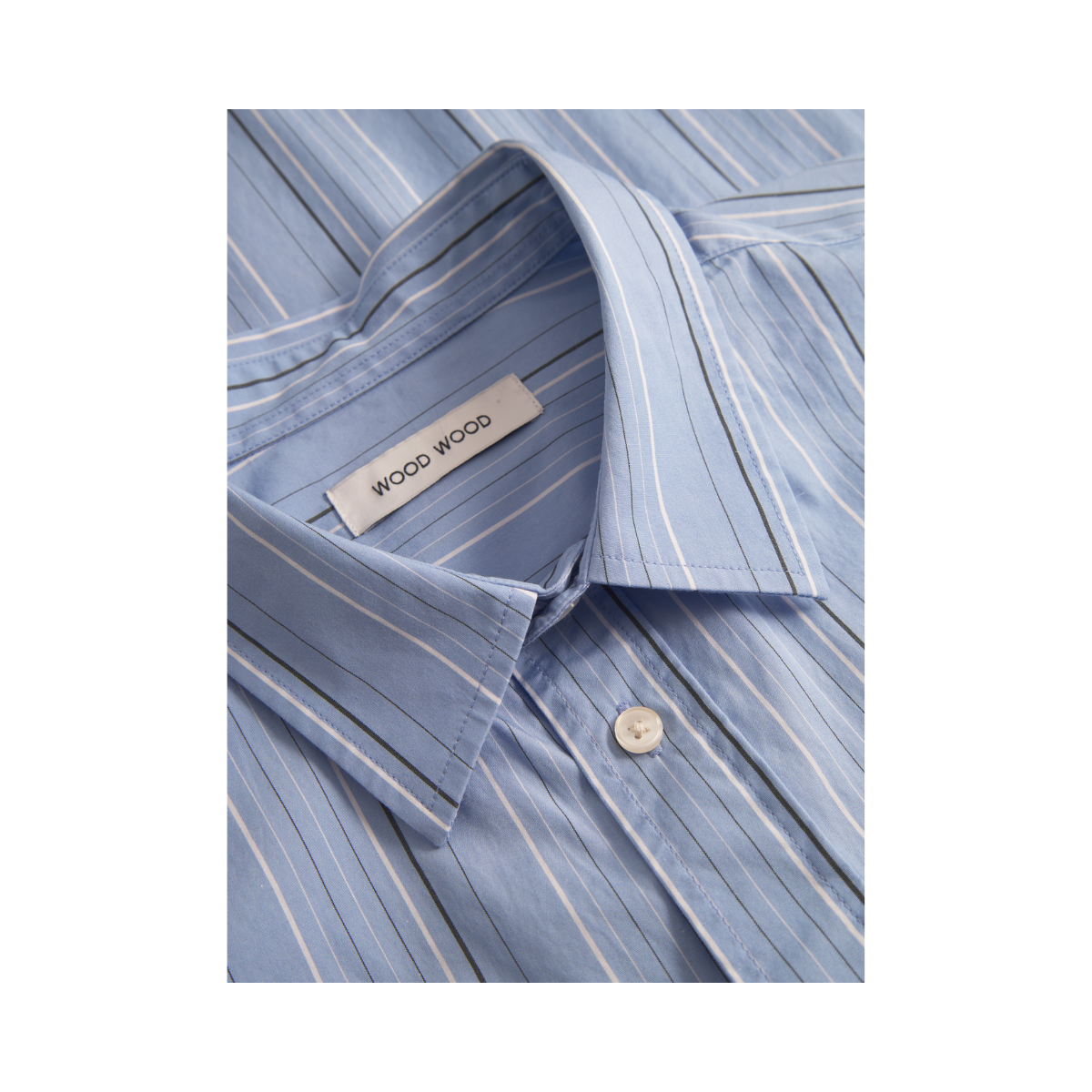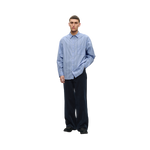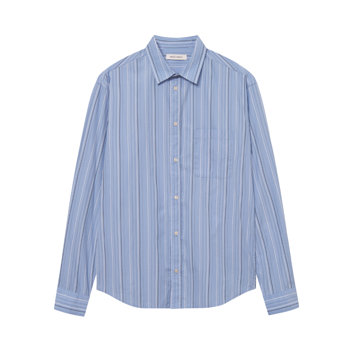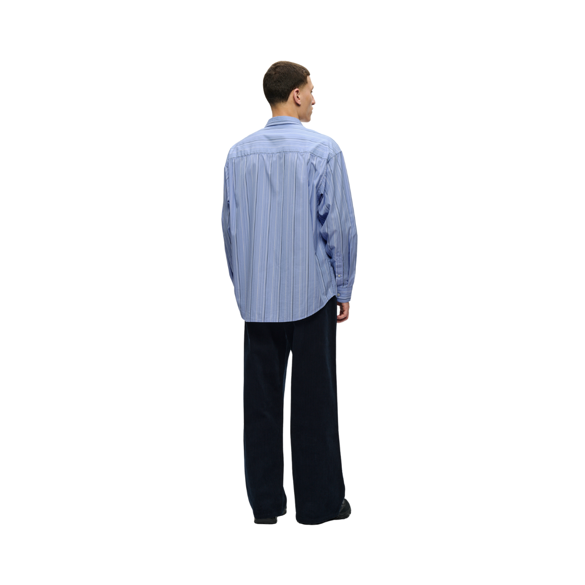 En avslappnad, randig button-down-skjorta i bomull med loose-fit och klassisk Kent-krage. Mönstret i ton‑i‑ton-ränder skapar en modern, men ändå tidlös look, medan bröstficka och knappslå ger praktisk funktion. Perfekt balans mellan avslappnad streetwear och skandinavisk minimalism.