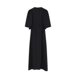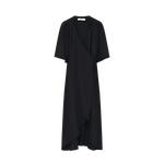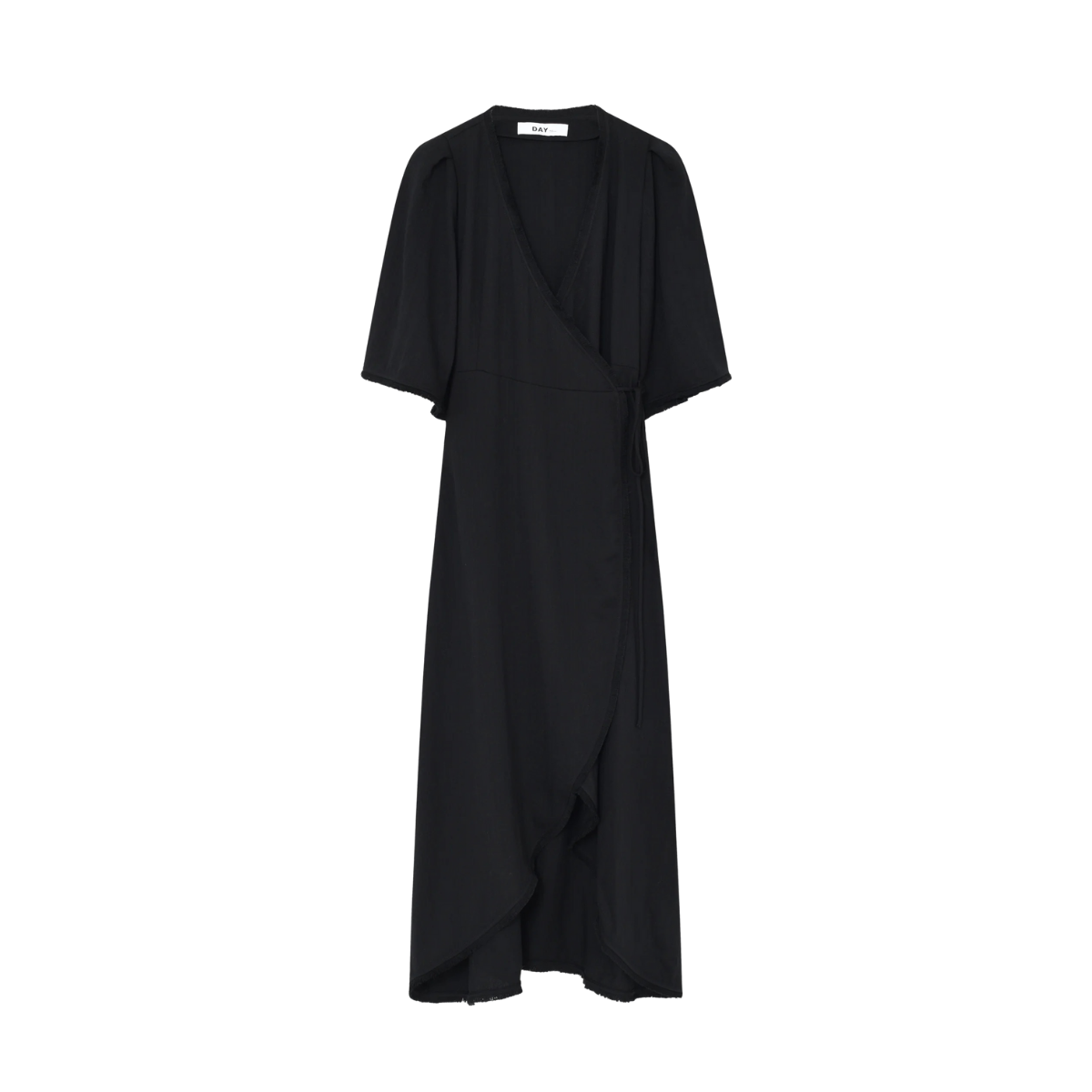 Denna klassiska omlottklänning i linne har ett elegant och tidlöst uttryck. Klänningen är designad med ett tunt knytband som löper genom insidan och knyts i sidan för en smickrande passform. Den djupa V-ringningen ger en feminin silhuett, medan fransdetaljer längs kanterna tillför en subtil, trendig touch. Bär denna mångsidiga garderobsklassiker tillsammans med en grovstickad kofta för en mysig men samtidigt uppklädd look.