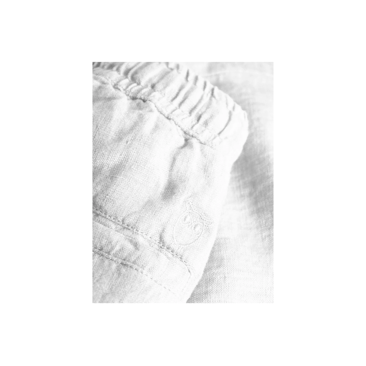 Ett par lösa linnebyxor med en rak passform och ett elastiskt midjeband, justerbara snören och knappstängning. Tillverkad av ekologiskt linne, kvaliteten känns otroligt mjuk, lätt och luftig att bära. Byxorna är avslutade med snedställda framfickor och diskreta bakfickor. Välj ett par mjuka och ansvarsfullt gjorda byxor för sommaren.