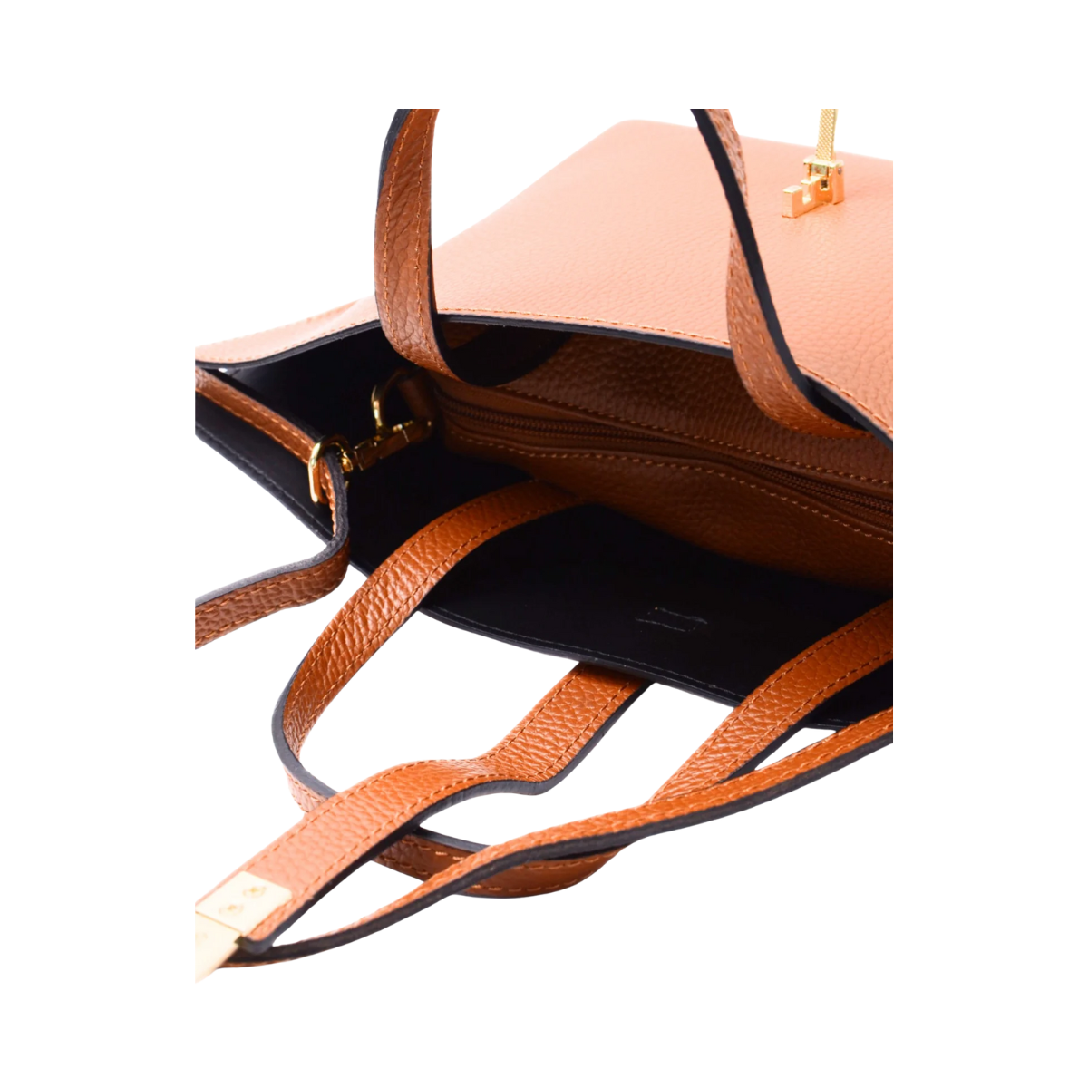 Elegant väska med stilrent lås och praktisk design. Inuti finns ett fastsytt fack som skapar totalt tre separata fack för enkel ordning på dina saker. Den långa axelremmen gör väskan bekväm att bära över axeln. En tidlös och funktionell väska för vardag och fest.