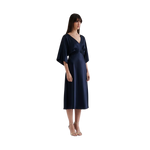 Juno V-Neck Satin Midi Dress - Dark Blue