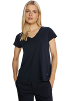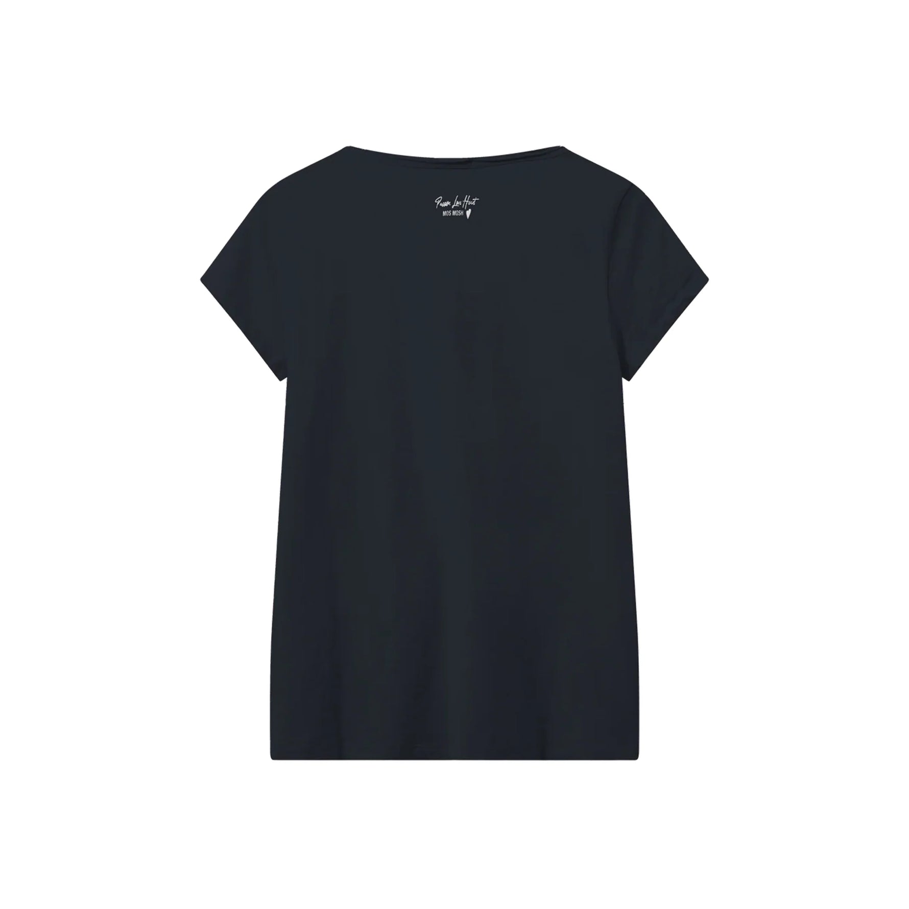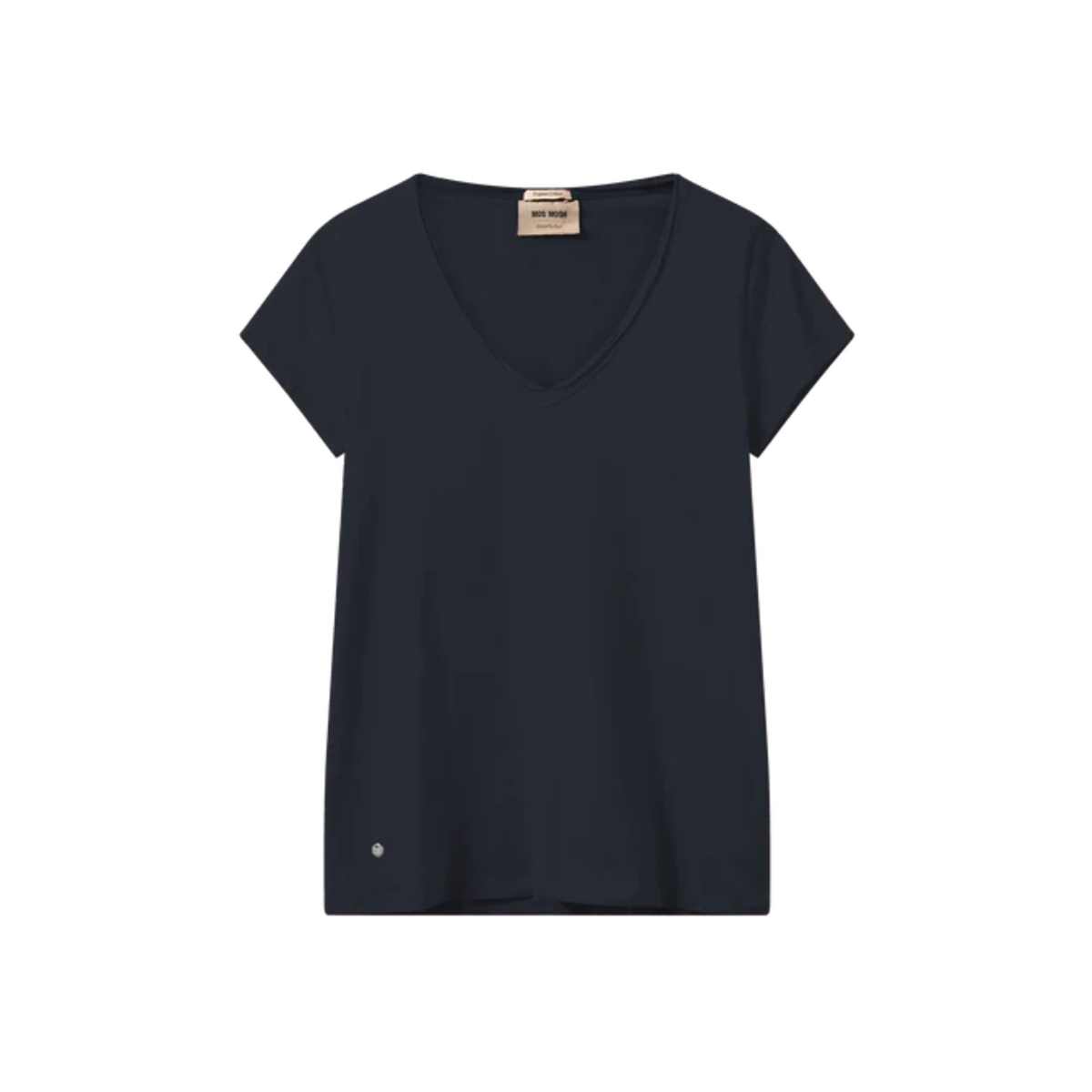 Styckpris / perMörkblå V-ringad T-shirt från Mos Mosh. Avslappnad passform, korta ärmar och logga broderat i nacken.