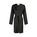Kort svart klänning med långa ärmar från Neo Noir. Klänningen har en normal passform med ett smalt knytband i midjan för en markerad figur. Den har en stilren sofistikerad finish och en drapering vid halsen.