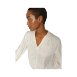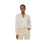 Elegant blus i sidenliknande jacquardtyg med subtil glans och vävt paisleymönster. V-ringning och långa ärmar skapar en tidlös, feminin silhuett med naturlig struktur och förfining. Perfekt kombinerad med skräddarsydda byxor eller kjol för en sofistikerad vardagsstil.