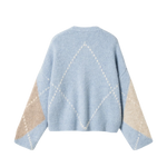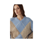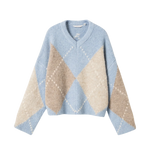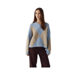 Lai Knit är en klassisk tröja med ett tidlöst Argyle-mönster. Den har V-ringning, långa voluminösa ärmar och en avslappnad passform för en elegant siluett. En stilfull statement-tröja som enkelt kan matchas med jeans, skräddade byxor eller kjol. Perfekt för både vardag och mer uppklädda tillfällen.