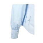 En elegant blus i 100% bomullspoplin med V-ringning, liten krage och breda manschetter med broderad logotyp.