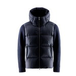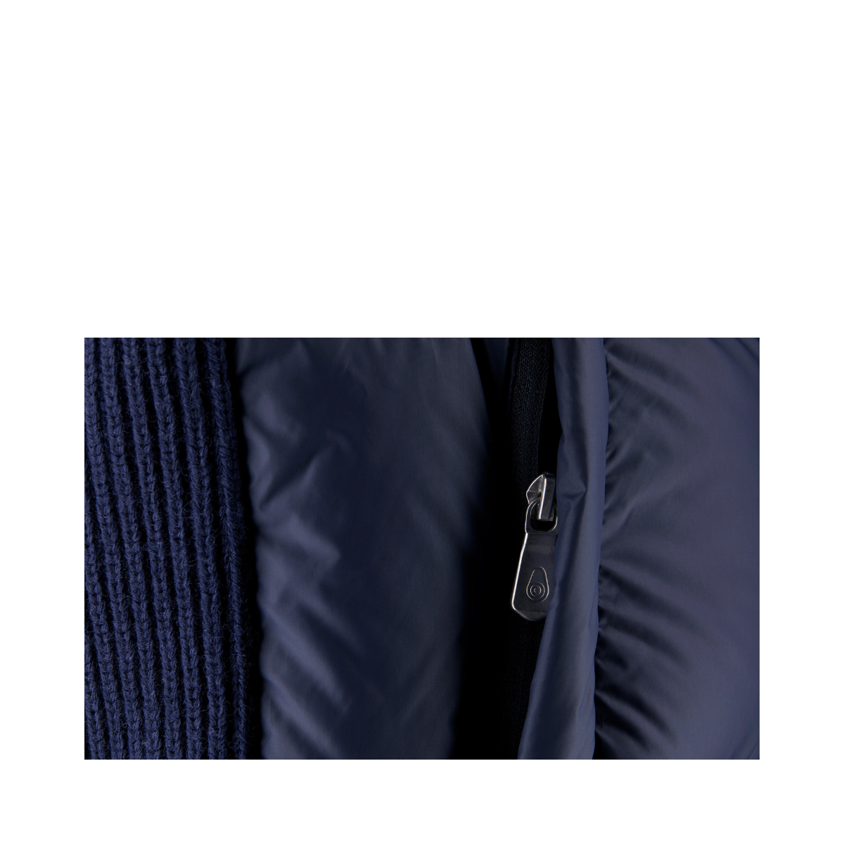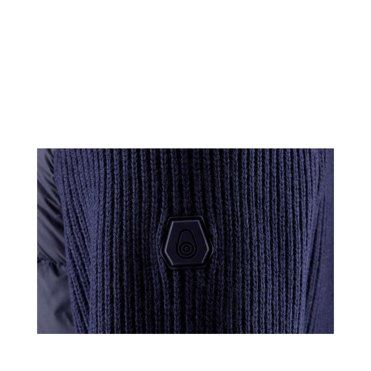 Hybridjacka med ribbstickade ullärmar och dunisolerad front och huva för extra värme. Framsidan är tillverkad i återvunnen polyester med 120 g 90/10 BlueSign- och RDS-certifierat dun (fillpower 700). Utrustad med tvåvägsdragkedja, midjefickor och justerbar huva. Detaljer med Sail Antarctica-badge på ärmen och Sail Racing-logotyper.