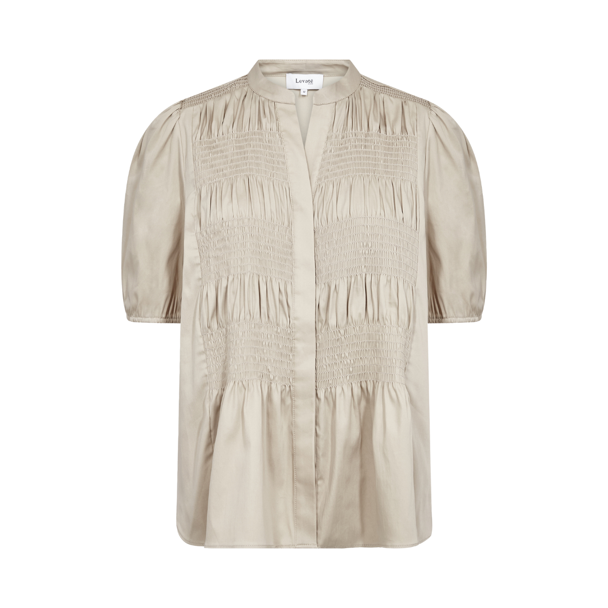 Lätt och luftig blus med dekorativ smock framtill och mjukt fall. Den korta ärmen och den avslappnade silhuetten ger ett feminint uttryck som fungerar lika bra till vardags som vid mer uppklädda tillfällen. En stilren modell som enkelt kan kombineras med både denim och skräddade byxor.