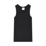 Ärmlös, figurnära topp i ribbat stretchmaterial med rund scoop-halsringning. Diskret ton-i-ton “DD”-logo på bröstet och vit invändig DAY-etikett. Ett tidlöst basplagg med skandinavisk minimalism – perfekt för både layering och varma dagar.