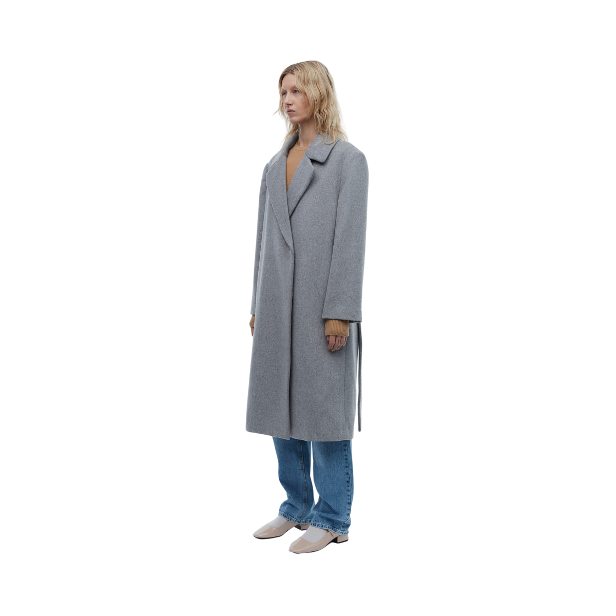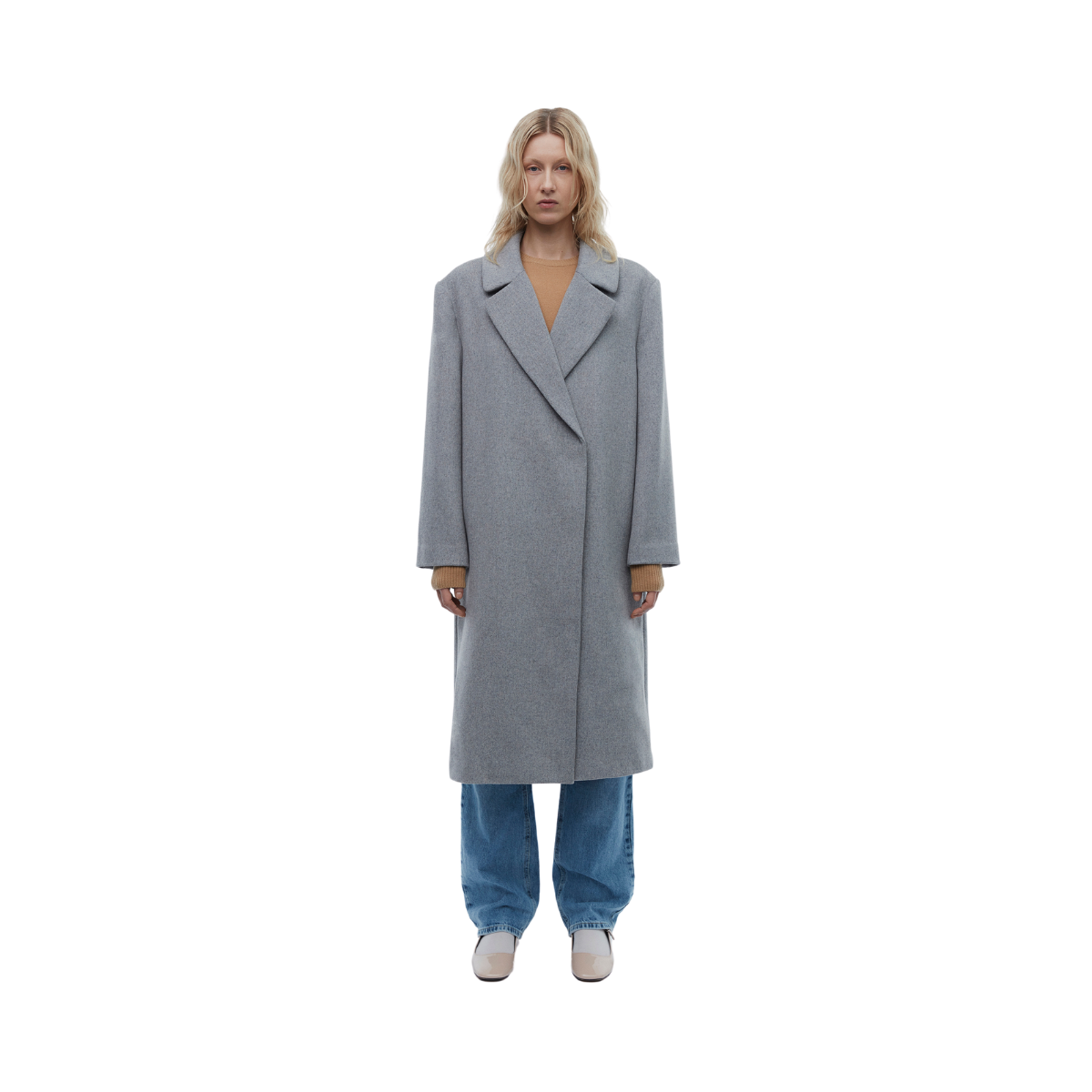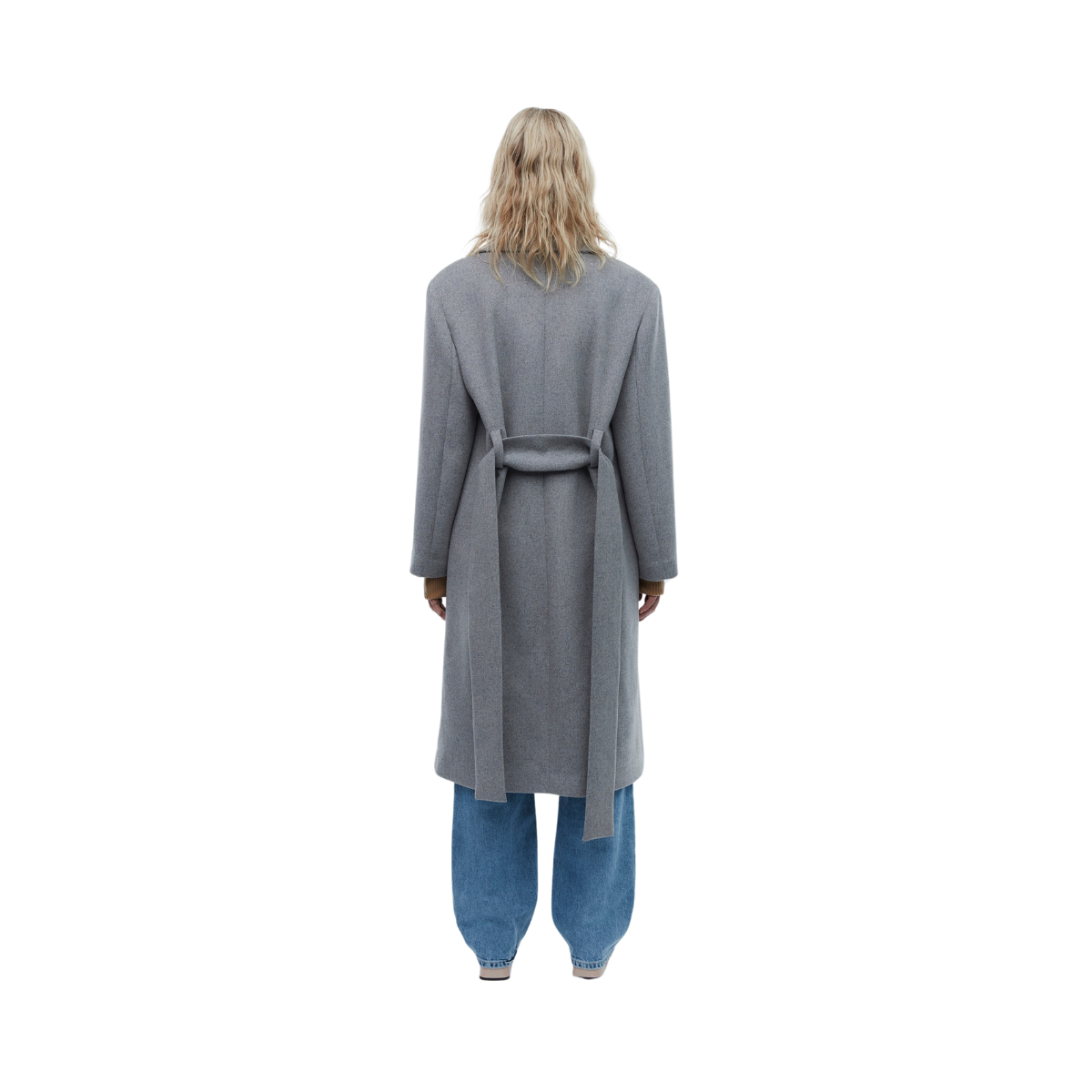 Styckpris / perGrå tjock yllekappa från 2NDDAY. Kappan har en överdimensionerad passform och har en dold dubbelknäppt knappstängning framtill. Den har ett knytband i midjan för att justera passformen för mer figursydd eller avslappnad siluett. Kappan är fullt fodrad för extra värme, har stor krage och två praktiska framfickor.