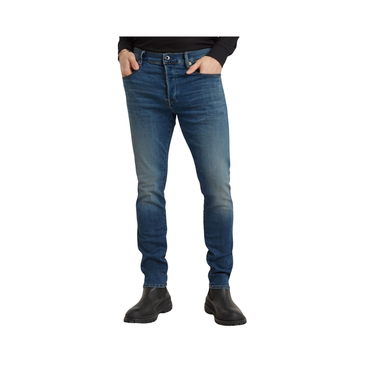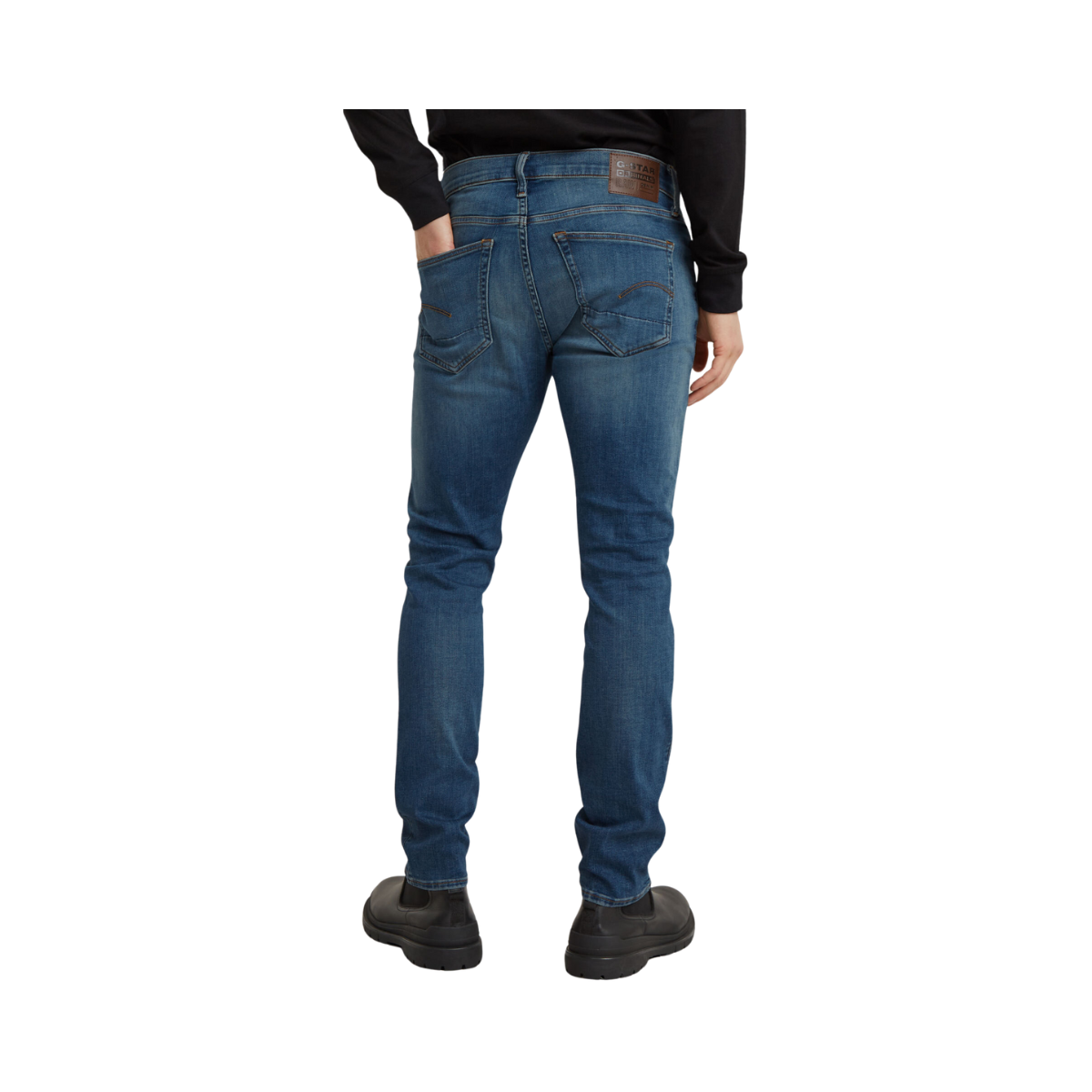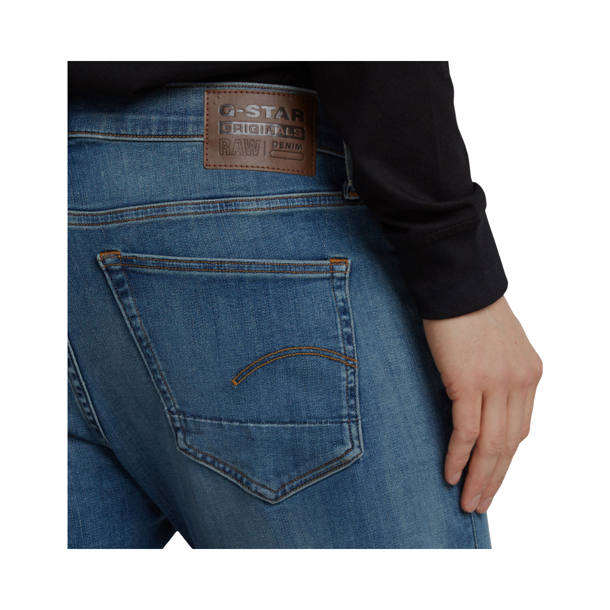 En klassisk 5-fickorsdesign inspirerad av autentiska Western-jeans. De är smalare från lår till benslut och har en knappgylf. Jeansens bakficka är prydd med en G-Star RAW-label i ett läderliknande papperstyg, vilket ger dem en modern och hållbar känsla.