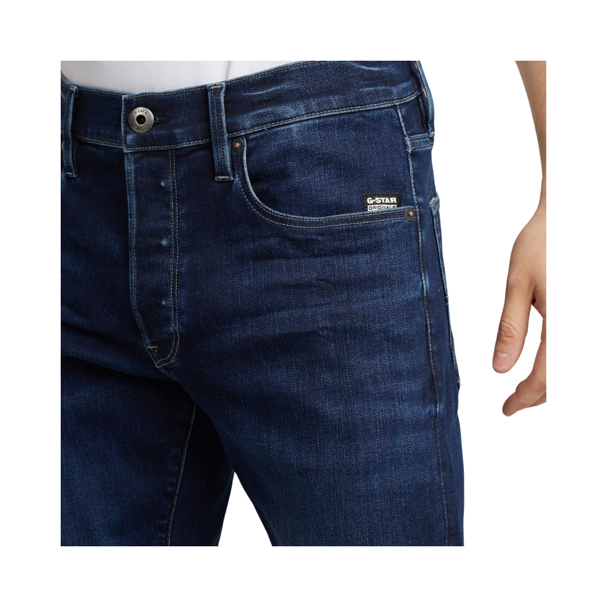 En klassisk 5-fickorsdesign inspirerad av autentiska Western-jeans. De har en knappgylf och är prydda med en G-Star RAW-label i ett läderliknande papperstyg på bakfickan.
