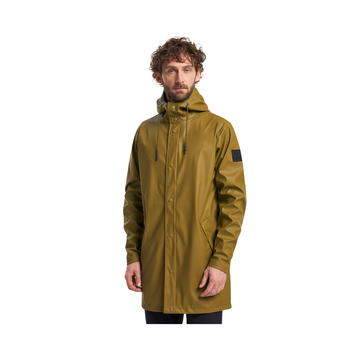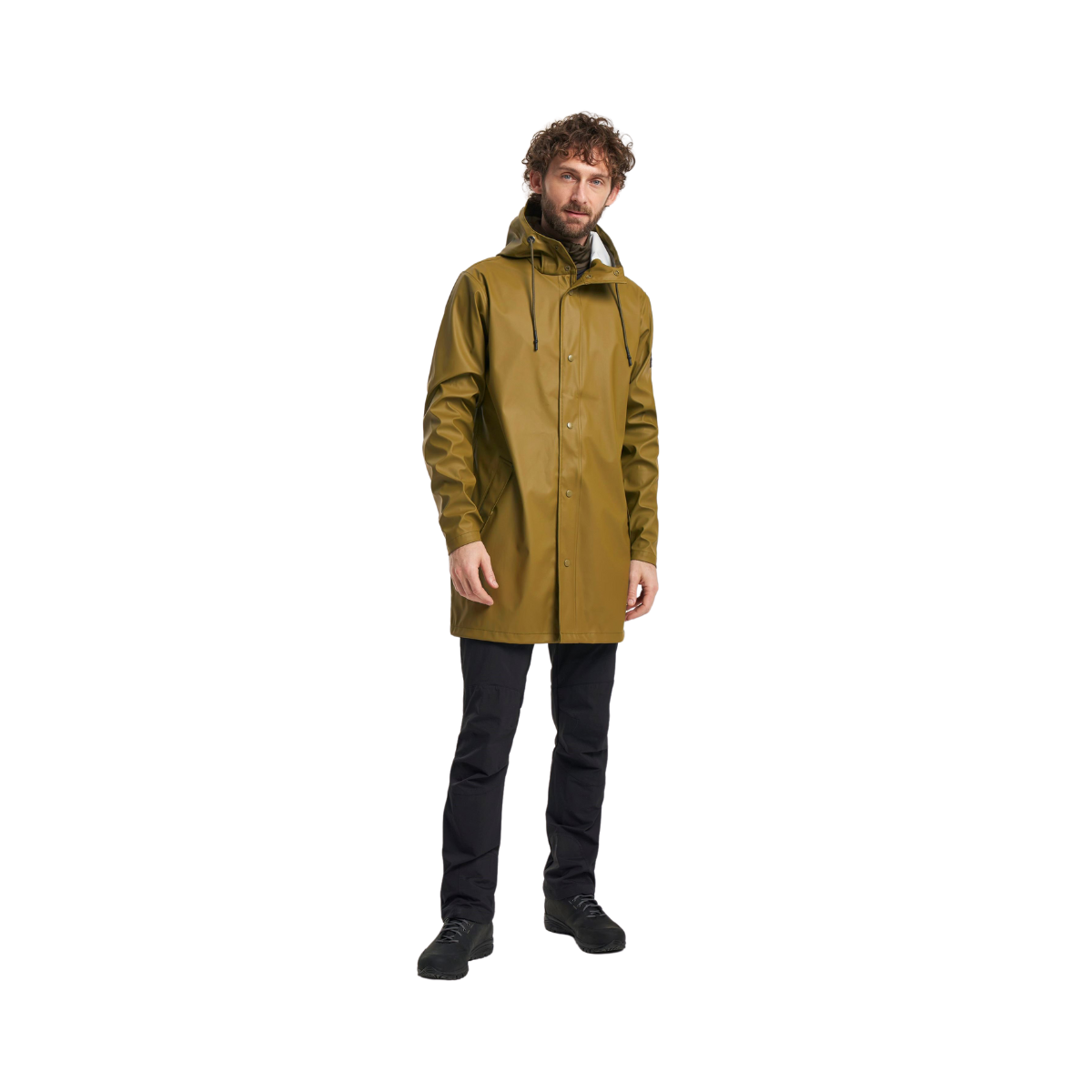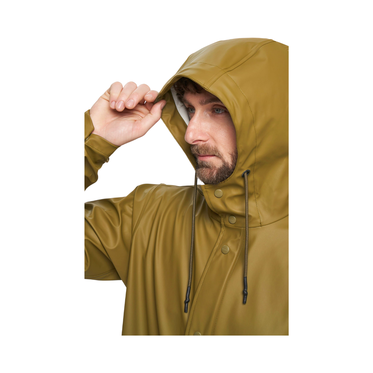 Styckpris / perRegnkappan Apelviken PU har en klassisk design med rak silhuett och mjuk jersey på insidan. Justerbara muddar och en slits baktill ger ökad rörelsefrihet. Med en vattenpelare på 5 000 mm, fast huva och förseglade sömmar håller den dig garanterat torr även i kraftigt regn.