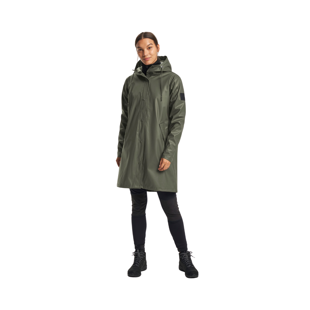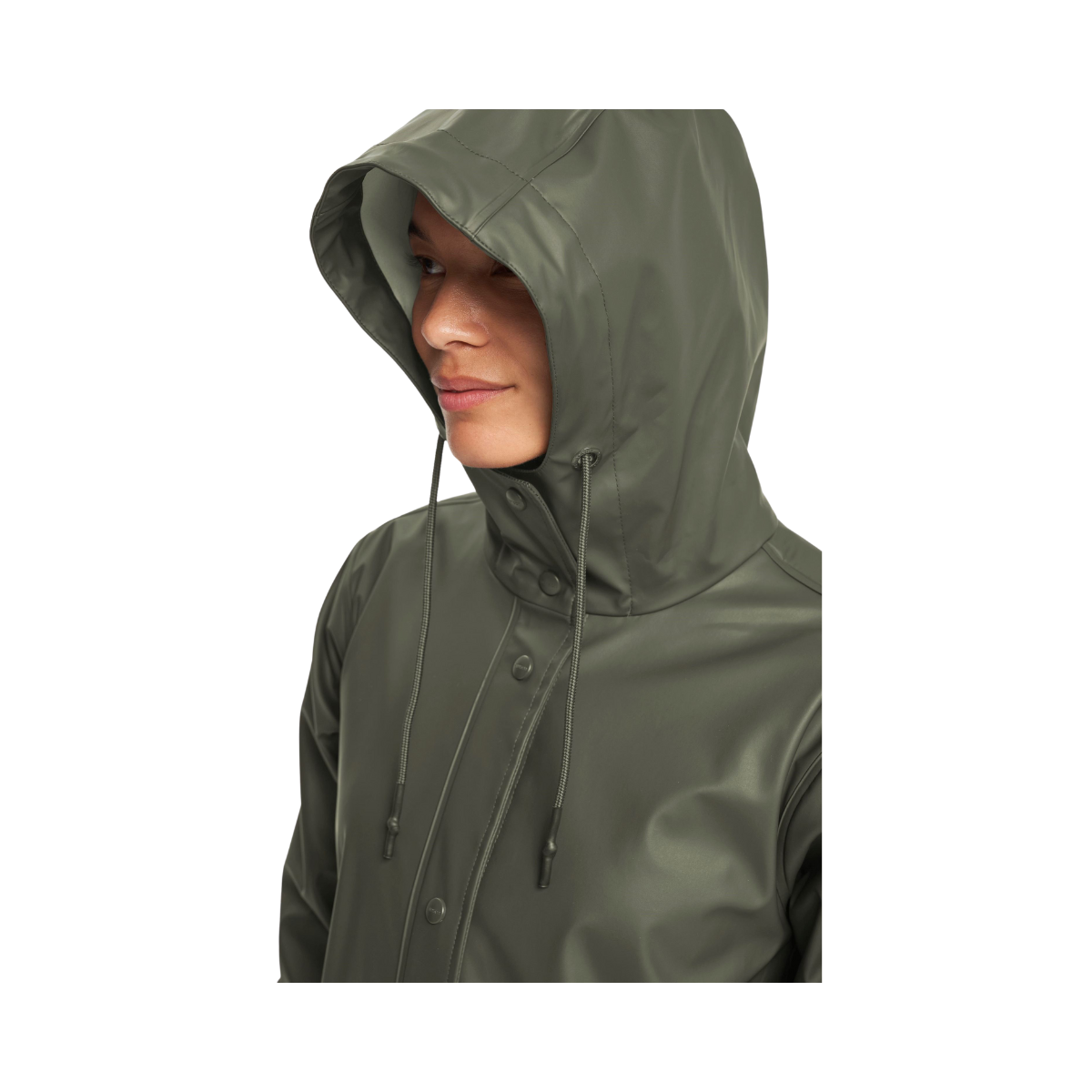 Apelviken är en stilren regnkappa för kvinnor med en a-linjeformad silhuett och klassisk design. Tillverkad i polyuretan med mjuk trikå på insidan och svetsade sömmar för optimalt skydd. Med en vattenpelare på 5 000 mm håller den dig torr även i kraftiga regnskurar. Förböjda ärmar, justerbara ärmslut och fast huva ger både komfort och funktion.