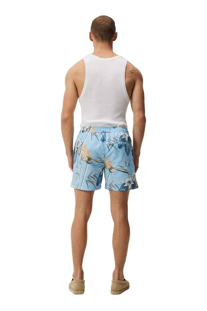 Styckpris / perTa ett dop med stil med dessa härliga blåa badshorts från J.Lindeberg. Shortsen har en normal passform och elastisk midja med dragsko. De är designade för att hålla dig sval och känna dig bekväm. Shortsen har tvåsidfickor varav en stängs med dragkedja samt en bakficka som stängs med tryckknapp.