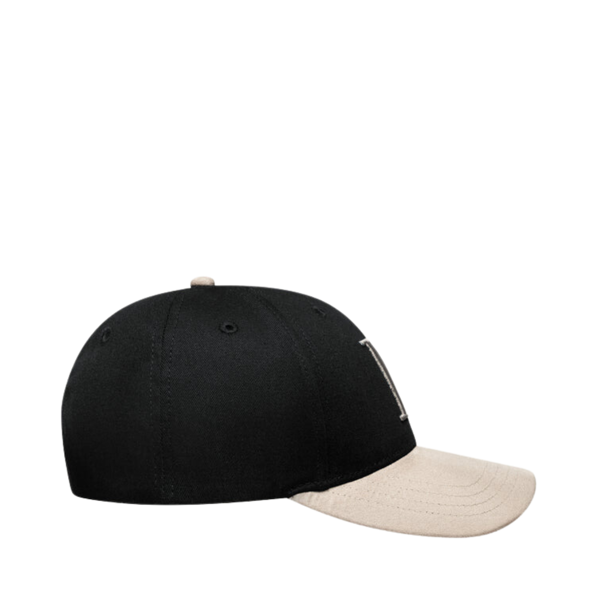 Styckpris / perSvart och beige keps från Les Deux. Kepsen har en strukturerad framsida med böjd mockaskärm och pryds av en broderad Les Deux-logga. På baksidan finns ett justerbart snapback-fäste.