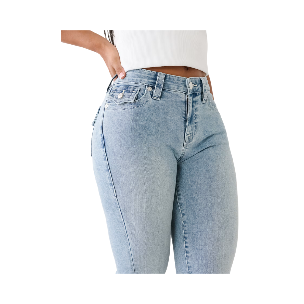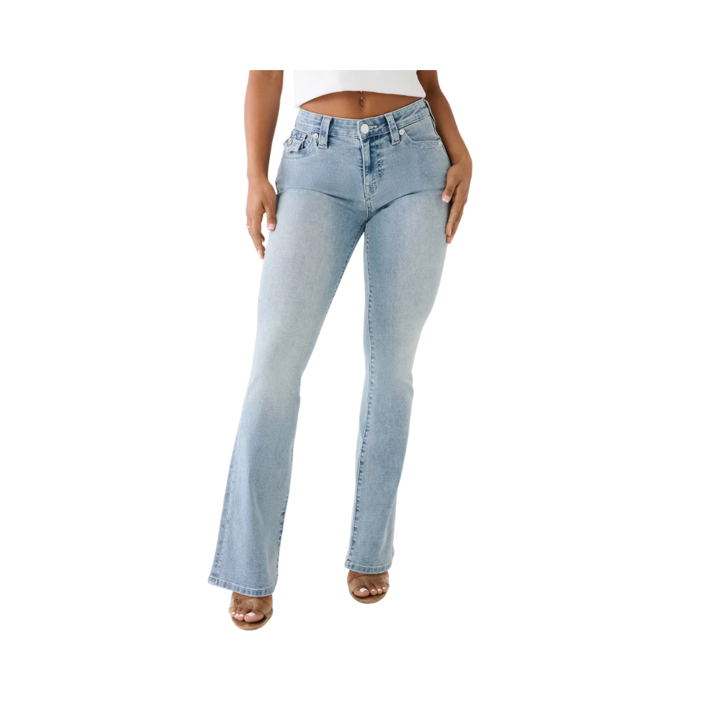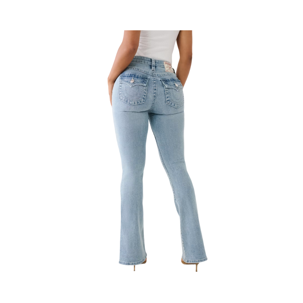 Styckpris / perKlassiska ljusblå Bootcut jeans från True Religion. Med en mid-rise passform, utsvängda byxben och en diskret blekning blir dessa jeans ikoniska och mångsidiga. Jeansen har vita sömmar, dragkedja i gylfen och bälteshällor. Avslutad med hästskodetaljer längs bakfickorna med lock som ger en subtil men ändå märkbar accent.