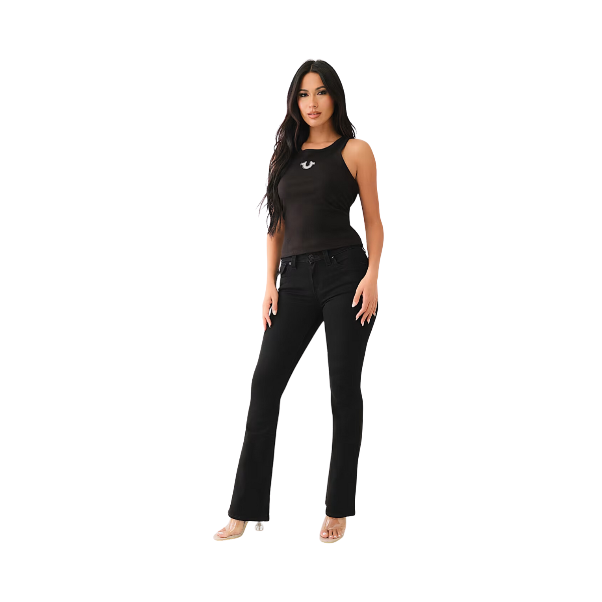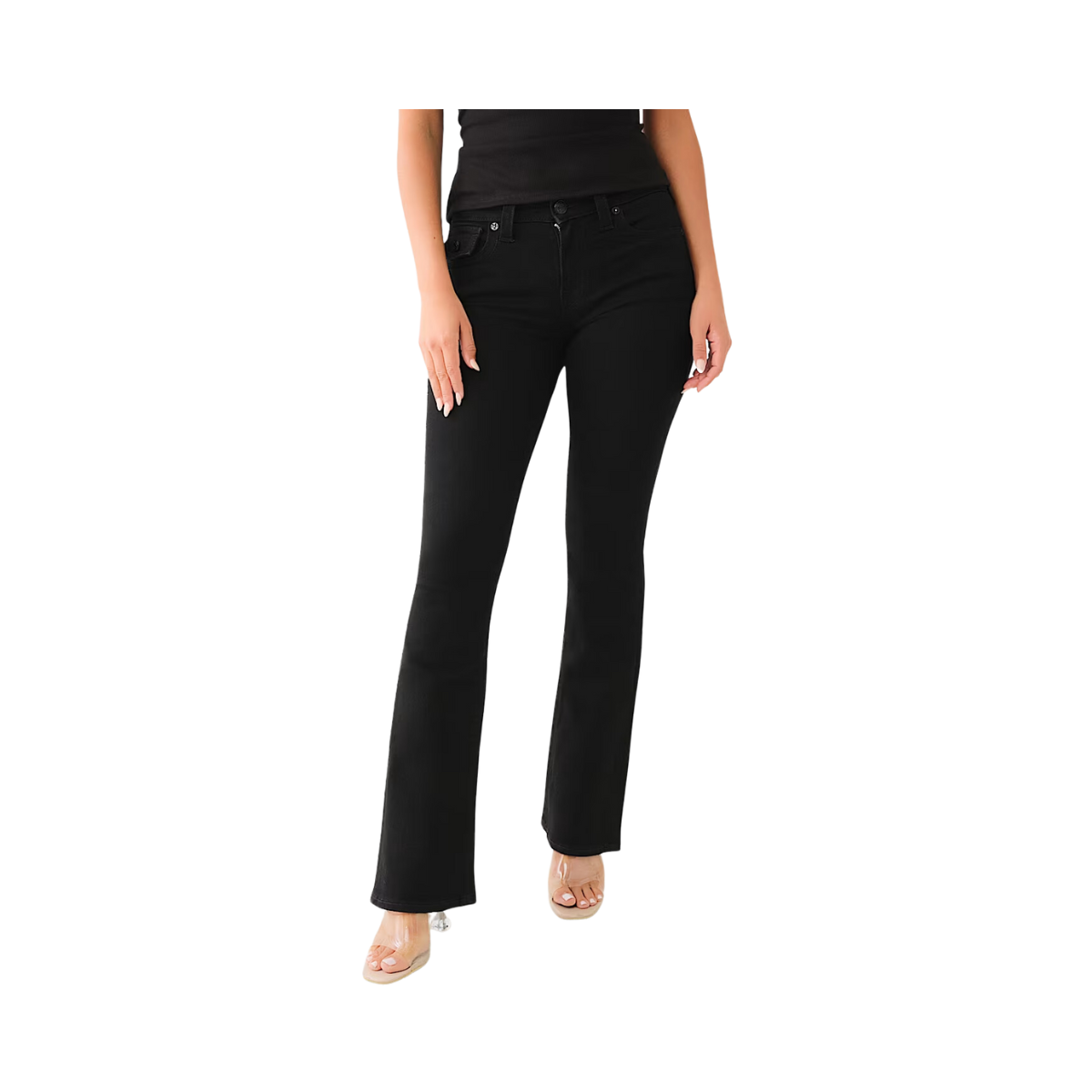 Styckpris / perSvarta bootcut jeans från True Religion. Jeansen är designade med en normalhög midja och lätt utsvängda ben. De har fickor med lock, prydda med signaturdetaljer i form av hästskor.